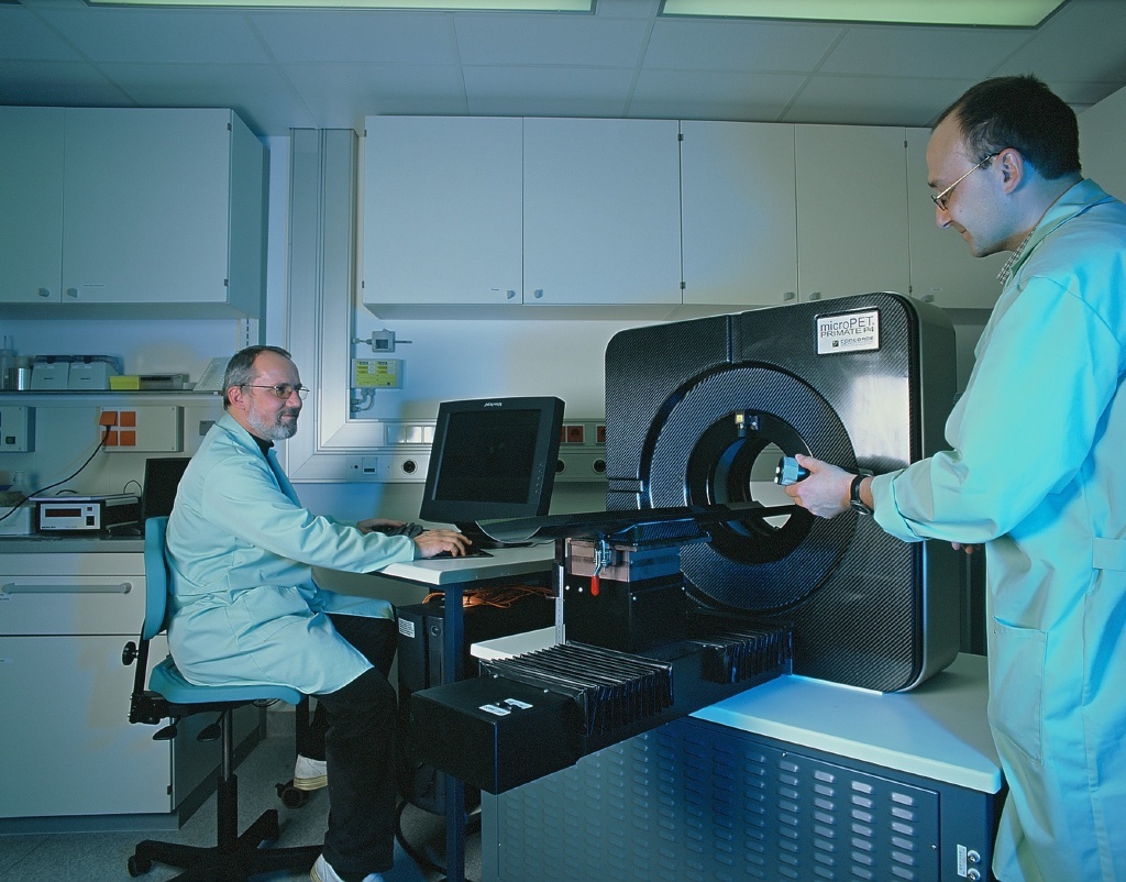 Die Positronen-Emissions-Tomographie (PET) ist ein modernes bildgebendes Verfahren, mit dessen Hilfe molekulare und zelluläre Transportprozesse im lebenden Organismus mit guter räumlicher Auflösung erfasst werden können. Die PET-Methode macht den Körper quasi transparent und lässt neuartige Einblicke in die sich unter der Oberfläche abspielenden Stoffwechselvorgänge zu. In den letzten 10 bis 15 Jahren hat sich die PET deshalb zu einer wichtigen Methode in der Medizin entwickelt. So wird sie in der Nuklearmedizin etwa zur Diagnostik von Tumoren oder von Erkrankungen des zentralen Nervensystems eingesetzt. Das Forschungszentrum Rossendorf verfügt über ein PET-Zentrum, das gemeinsam mit dem Universitätsklinikum der Technischen Universität Dresden genutzt wird.