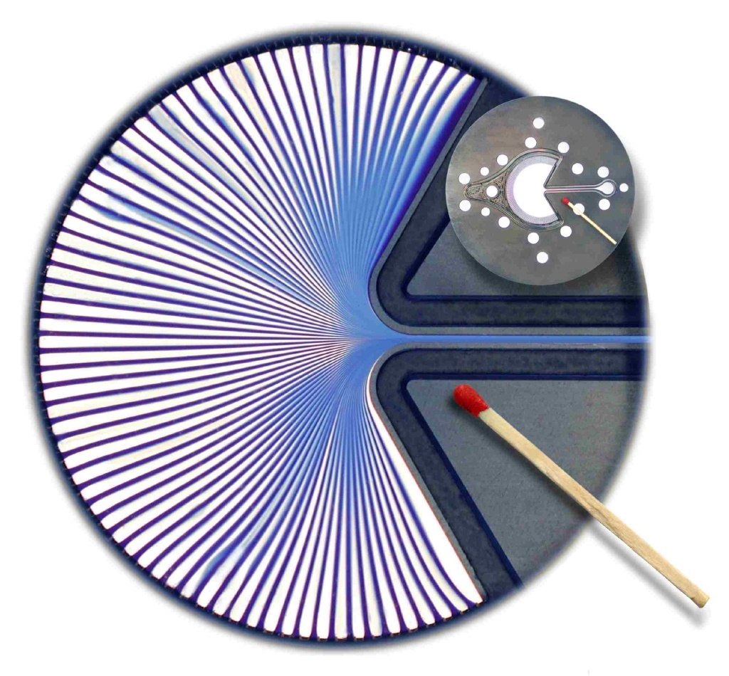 Die Institut für Mikrotechnik Mainz GmbH (IMM) hat für Industrieapplikationen den neuen SuperFocus-Mikrostruktur-Mischer "SFIMM-V2" entwickelt. Der neue Hochdurchsatzmischer erzielt mit wasserähnlichen Flüssigkeiten eine Mischleistung von 350 Litern pro Stunde bei einem Druckverlust von 10 bar. Die vollständige Mischung zweier gelöster Reaktanden erfolgt in nur 4 Millisekunden (exklusive der Fokussierzeit). Zu verdanken hat der neue SuperFocus-Mischer seine Leistungsfähigkeit einer Interdigitalstruktur, die eine nahezu perfekte Multilamellen- Anordnung der Reaktanden erzielt. Damit erfüllt der SFIMM-V2 die wichtigsten Ansprüche für einen Einsatz in der industriellen Produktion von Feinchemikalien.