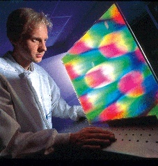Mikrostrukturen können Oberflächen von Anzeigen entspiegeln. Sie können Projektionsschirme heller erscheinen lassen und Tageslicht in Gebäude lenken oder Sonnenschutz bieten. Für solche großflächigen Anwendungen werden präzise gefertigte Strukturen mit Dimensionen im Mikrometerbereich auf Quadratmeter großen Flächen benötigt. Wie man Mikrostrukturen bestehend aus Milliarden bis Billionen von Strukturdetails mittels holographischer Verfahren gleichförmig auf wenige Nanometer genau herstellt, das ist das Know-how der aus dem Fraunhofer ISE ausgegründeten Firma Holotools GmbH. Die Fraunhofer-Gesellschaft ist an dem jungen Freiburger Unternehmen beteiligt. Holotools nutzt die seit 1995 am Fraunhofer ISE entwickelte Technologie in Lizenz und nimmt damit weltweit eine Spitzenstellung ein.
