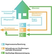 Das Konzept unter Federführung des Stuttgarter Fraunhofer-Instituts für Grenzflächen- und Bioverfahrenstechnik IGB sieht vor, das Regenwasser aller Grundstücke zu sammeln. In einer zentralen, modernen Membrananlage zu Trinkwasserqualität aufbereitet, steht es den Haushalten dann als hygienisch einwandfreies Brauchwasser zur Verfügung. Dieses Wasser eignet sich zur Körperpflege, um Geschirr und Wäsche zu waschen, Toiletten zu spülen oder den Garten zu bewässern. Salzfrei wie es ist, kann bei der Heißwasserzubereitung auf Entkalkungsmittel und in der Waschmaschine auf Weichspüler verzichtet werden. Im Neubaugebiet wird den Haushalten hierzu ein eigenes Brauchwassernetz, das parallel zum Trinkwassernetz verlegt wird, installiert.