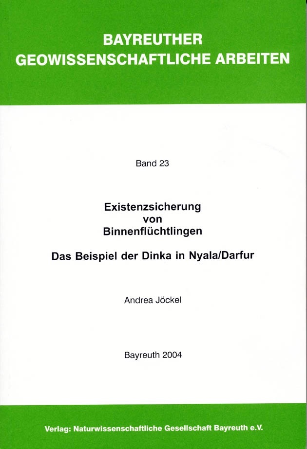 Bayreuth (UBT). Den Umgang mit Krisensituationen von Binnenflüchtlingen im Sudan beschreibt eine soeben erschienene Doktorarbeit der Bayreuther Bevölkerungs- und Sozialgeographin Andrea Jöckel. Ihrer Untersuchung "Existenzsicherung von Binnenflüchtlingen. Das Beispiel der Dinka in Nyala/Darfur", die jetzt als Band 23 der Bayreuther Geowissenschaftlichen Arbeiten veröffentlicht wurde, macht deutlich, dass Binnenflüchtlinge trotz widrigster Bedingungen an den Zufluchtsorten mit der neuen unbekannten Situation auf der Grundlage eines würdevollen Miteinanders umgehen.