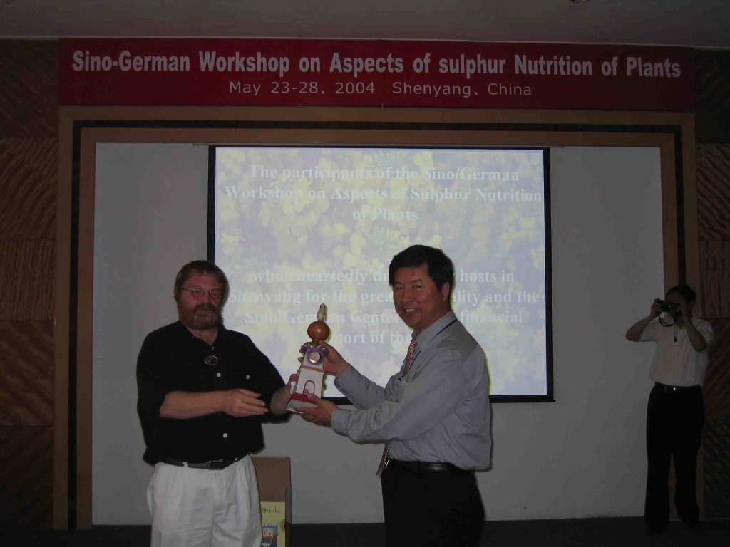 Zur Frage von S-Mangel als Folgeerscheinungen von Emissionsminderungen und zum Transfer relevanter Technologien in Forschung und Landwirtschaft, fand in Shenyang (Nordost China) vom 23. - 28. Mai 2004 die 1. Deutsch/Chinesische Arbeitstagung zu "Aspekten der Schwefelernährung von Pflanzen" statt. Die Tagung wurde vom Institut für Pflanzenernährung und Bodenkunde der Bundesforschungsanstalt für Landwirtschaft (FAL) in Braunschweig gemeinsam mit den Instituten für angewandte Ökologie (IAE) in Shenyang und Bodenkunde (ISSAS) in Nanjing der Chinesischen Akademie der Wissenschaften (CAS) organisiert und durchgeführt. Gefördert wurde die Veranstaltung vom Deutsch/Chinesischen Wissenschaftszentrum in Peking, das wiederum von der Deutschen Forschungsgemeinschaft (DFG) und der Nationalen Forschungsgesellschaft in China (NFSC) getragen wird.
