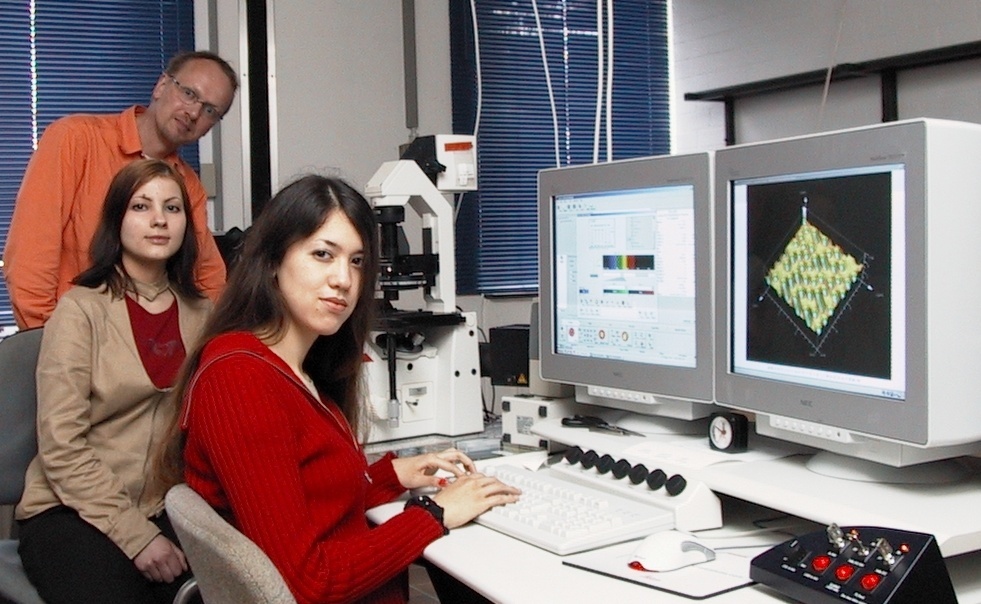 Im Mai und Juni waren die beiden jungen Weltenbummlerinnen an der TU Clausthal zu Gast: Die Arbeit im Institut für Physikalische Chemie gefällt ihnen sehr gut. "Meine starken Fächer in der Schule waren Chemie, Biologie und Deutsch, so ist für mich ein Forschungspraktikum in der Physikalischen Chemie als Kontrastprogramm genau richtig, denn auf dem Gebiet kenne ich mich überhaupt nicht aus", sagt Anna Boleininger. Betreut von Privatdozent Dr. Jörg Adams, konnte sie an den Clausthaler Forschungen zu neuartigen Polymergelen teilhaben. Deren Besonderheit ist, dass sie nicht wie üblicherweise Polymere als Kette identischer "Bausteine", den Monomeren, über so genannte Brückenbindungen vernetzt sind, sondern netzartige Kunststoffe über kleine Tonpartikelchen miteinander verbunden sind. "Wie aber deren Bindung genau aussieht, ist unbekannt. Ich konnte die verschiedensten Methoden kennen lernen, wie man versucht, den Aufbau dieser seltsamen Stoffe, die sich glibberig aber nicht feucht anfühlen, heraus zu bekommen", sagt Anna Boleininger. "Es ist schon toll, wie man hier von Forschungen erfährt, von denen ich sonst nie etwas gehört hätte", sagt Melanie Jauernick, die in der Arbeitsgruppe von Professor Dr. Diethelm Johannsmann mit Schwingquarzen Polymerfilme untersuchen konnte, die nur einige wenige Milliardstel Meter dick sind. "Alle hier im Institut sind sehr offen und bereit, ihre Arbeiten zu erklären", sagt Melanie Jauernick.