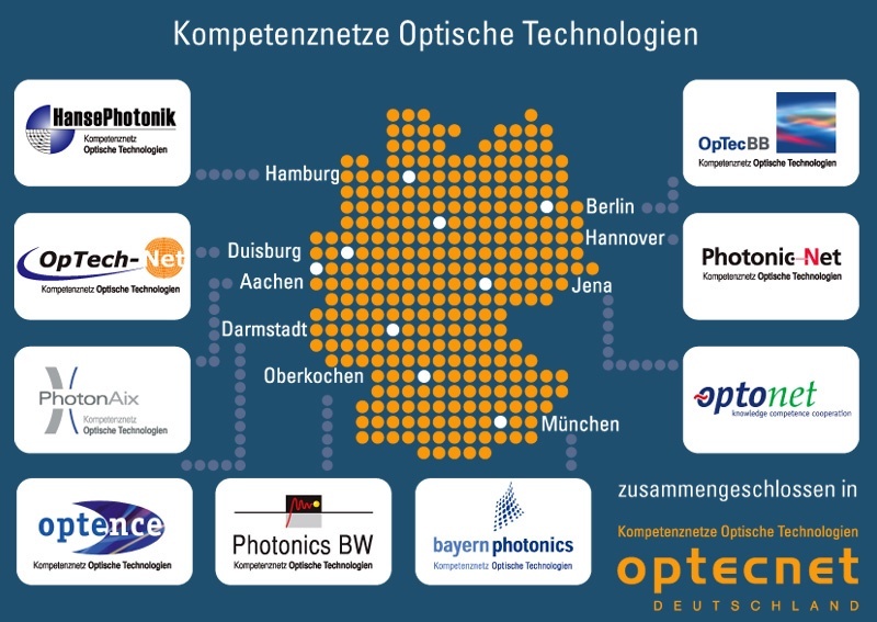 Die neun regionalen Kompetenznetze Bayern Photonics (Bayern), OpTech-Net (Nordrhein-Westfalen), OptoNet (Thüringen), OpTecBB (Berlin-Brandenburg), Photonics BW (Baden Württemberg), PhotonicNet (Niedersachsen), Optence (Hessen/Rheinland Pfalz), HansePhotonik (Norddeutschland) und PhotonAix (Region Aachen) präsentieren sich gemeinsam mit folgenden Mitausstellern: Optocraft, Fachhochschule Köln Institut für Angewandte Optik und Elektronik, Universität Paderborn, Fuji Magnetics, Docter Optics, CODIXX, Laser-Mikrotechnologie Dr. Kieburg, Holoeye, Ing. Büro Dr. Bernhard Michel, eagleyard Photonics, Osram, Wiro, m2k-Laser und Microliquids.