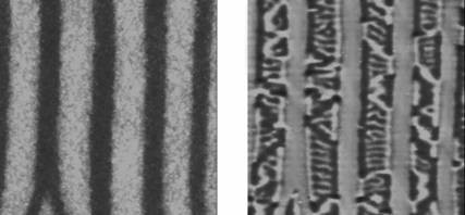Erst sind es nur dunkle Flecken, die sich im Zeitraffer bewegen und verändern. Dann aber werden daraus langgestreckte Inseln, die sich zu Streifen verbinden. Am Ende blickt der Betrachter auf ein regelmäßiges Streifenmuster auf dem Computerbildschirm, dass sich wie von selbst gebildet hat. "Die hellen und dunklen Flächen entsprechen Bereichen mit unterschiedlichen strukturellen und magnetischen Eigenschaften", erläutert Dr. Lutz Däweritz vom Paul-Drude-Institut für Festkörperelektronik (PDI). Das Material, in dem diese Muster entstehen, heißt Manganarsenid (MnAs) und wurde als dünne Schicht auf Galliumarsenid (GaAs) abgeschieden. Wissenschaftlich korrekt ausgedrückt: eine Hybridstruktur aus einem Halbleiter (GaAs) und einem ferromagnetischen Material (MnAs), in dem sich ferromagnetische und paramagnetische Streifen abwechseln.