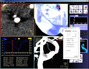 Wenn die Durchblutung des Gehirns durch Engstellen beeinträchtigt wird, kann ein Röhrchen (Stent) das verengte Gefäß von innen her offen halten. Beim Einführen des Stents ist es eine große Hilfe, den Ort des Eingriffs auf einem Bildschirm vergrößert und so plastisch vor Augen zu haben, als ob der Kopf des Patienten durchsichtig wäre. Neurochirurgen können dafür ein Mess- und Visualisierungssystem der Siemens AG nutzen.