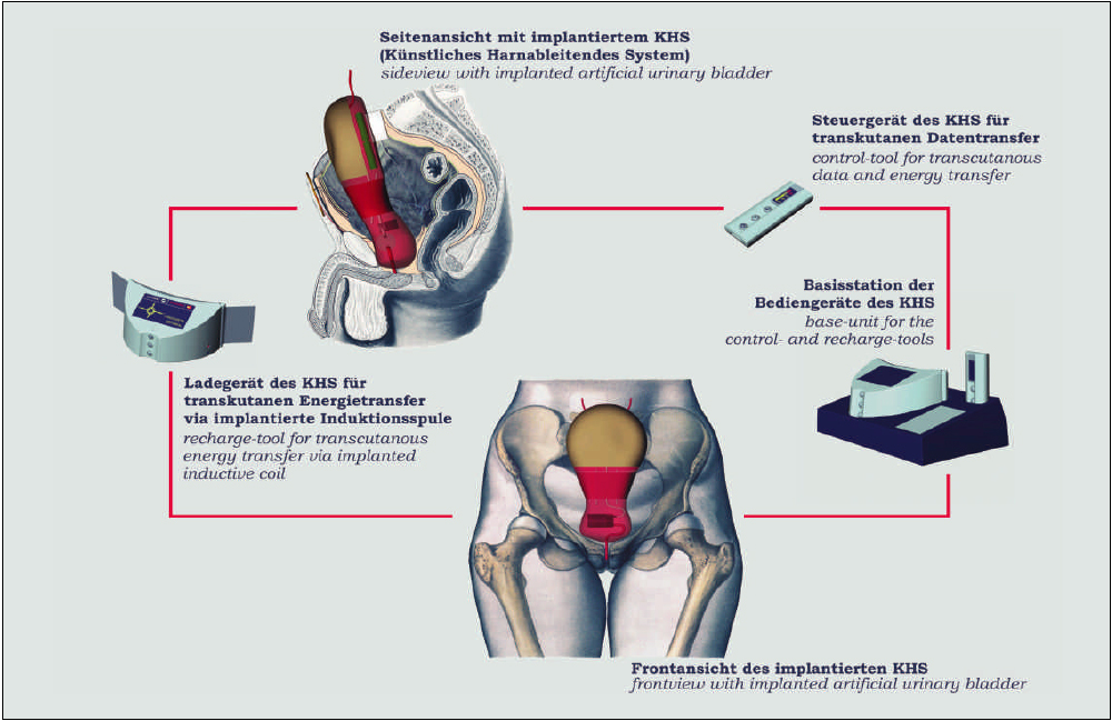 Auf dem BMBF-Stand wird zum ersten Mal das neue Modell einer vollständig implantierbaren Kunstharnblase - des alloplastischen Ersatzblasen-Implantats - in Funktion gezeigt. In den USA wurde kürzlich mit dem Abiocor das erste künstliche Organ geschaffen, ein Kunstherz, das noch in diesem Jahr zugelassen werden soll. In Deutschland entsteht nun mit der Harnblase das zweite vollständig künstliche Organ. Die implantierbare, energetisch autarke, alloplastische Ersatzblase ist die einzige Alternative zur Ausschaltung von Komplikationen, die z.B. bei der operativen Harnableitung auftreten: Wegen der operationsbedingten Belastung der Patienten und dem hohen Aufwand bei der postoperativen Versorgung sind die Erfolgschancen hier gering. Die alternativen, zum Teil offenen künstlichen Harnableitungssysteme werden sozial als sehr bedenklich eingestuft.