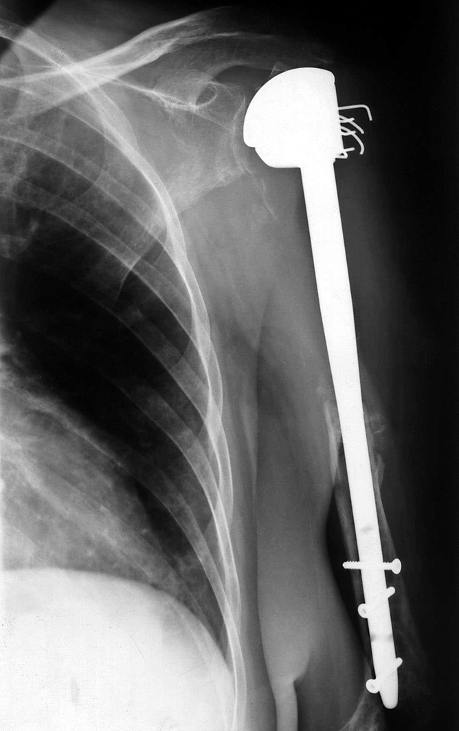 Spezialprothese aus Titan ersetzt Knochen im Oberarm