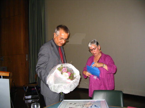 Die Vorsitzende, Frau Antonia Peters, überreichte Herrn Professor Hand im Rahmen des Festakts zum 10-jährigen Bestehen des Vereins am 16. September 2005 in der Aula der Universität Freiburg die Ernennungsurkunde.