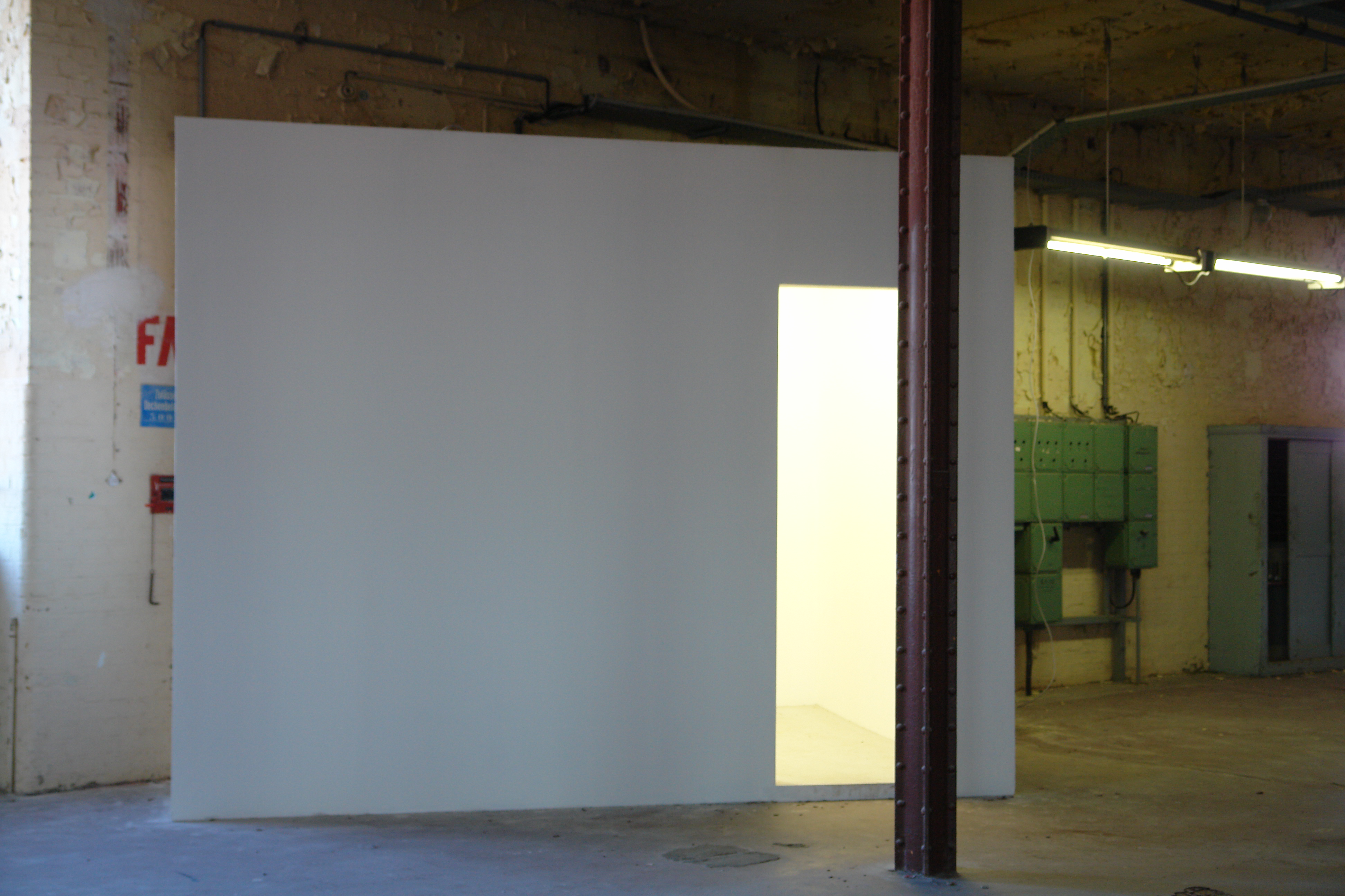 Nach der Einweihung des neuen Ausstellungsraumes der HGB Leipzig im Mai mit der Ausstellung "Multipolaire" zeigen die Studierenden der Klasse Prof. Joachim Blank nun an vier Tagen die Ausstellungsarchitektur ohne Ausstellung, oder anders ausgedrückt das Ausstellungsdisplay als Ausstellung. Dies soll den Blick auf die neu geschaffene, mit spezifischen Cubes versehene, marode Ausstellungshalle lenken und Fragen nach der Realisierbarkeit von zukünftigen Ausstellungskonzepten für diesen Ort provozieren.