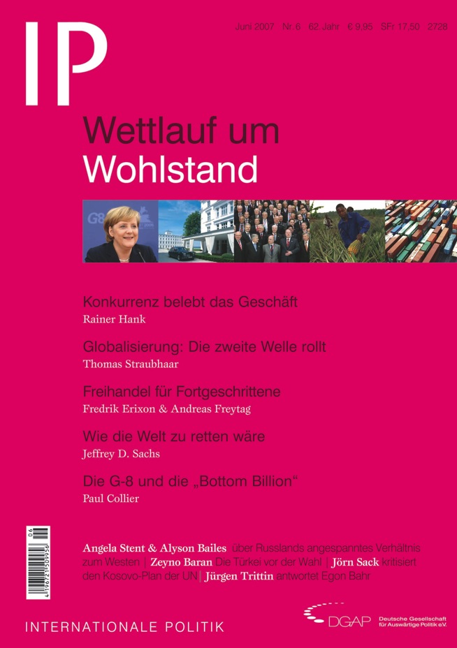 Nein, sagen die Autoren in der Juni-Ausgabe der IP. Die weltweite Konkurrenz kommt letztendlich allen zu Gute, meint Horst Siebert. Thomas Straubhaar schreibt, dass die Ungleichgewichte schon lange nicht mehr zwischen Ländern, sondern innerhalb der Länder für Konflikte sorgen. Und die Benachteiligten leiden nicht an zu viel, sondern an zu wenig Globalisierung: Paul Collier erklärt, dass die "Bottom Billion" der ärmsten Menschen in den Prozess der weltweiten Arbeitsteilung eingebunden werden muss. Jeffrey Sachs rechnet zudem vor, dass schon einige Dollar am Tag reichen würden, um sinnvoll Entwicklungshilfe zu leisten: Etwa mit Moskitonetzen, um Malaria vorzubeugen.