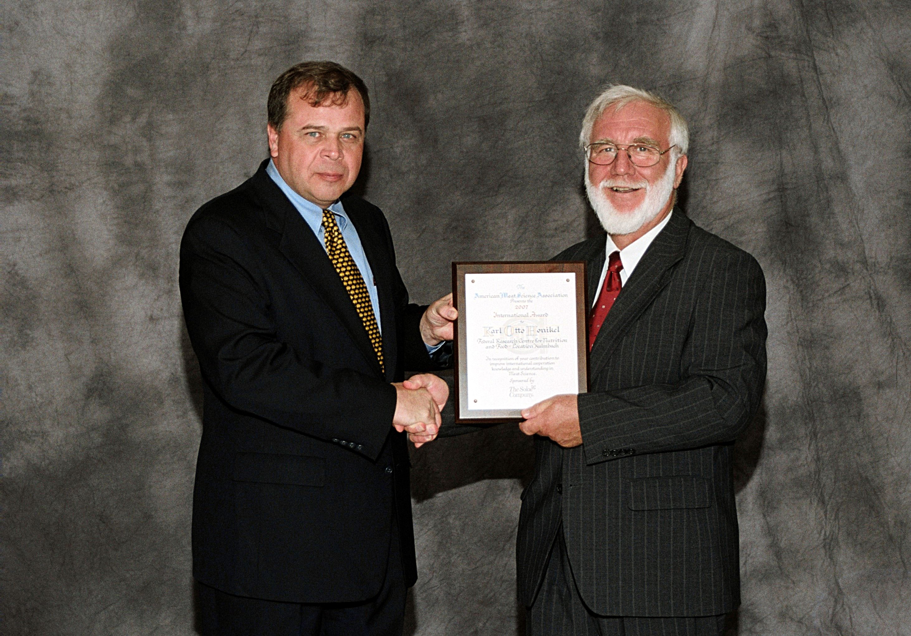 Der ehemalige Institutsleiter an der Bundesforschungsanstalt für Ernährung und Lebensmittel (BfEL), Standort Kulmbach, und langjährige Leiter der Bundesanstalt für Fleischforschung, Dr. Karl Otto Honikel, ist in den USA mit dem AMSA International Award geehrt worden. Die Auszeichnung der American Meat Science Association gilt in Fachkreisen als höchste Prämierung der Fleischforschung.