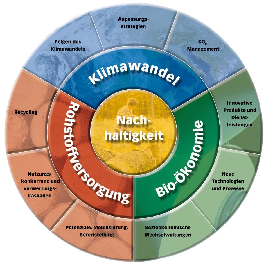 Die Deutsche Forschungsagenda ForstHolzPapier soll Wirtschaft, Wissenschaft und Politik dazu anregen, eine auf Wachstum und Nachhaltigkeit ausgerichtete wissensbasierte Bio-Ökonomie zu etablieren. Zentrale Punkte sind die Entwicklung von innovativen und ökoeffizienten Produkten und Dienstleistungen auf der Basis des Rohstoffes Holz. Hierin eingeschlossen sind dazu erforderliche neuartige und ressourceneffiziente Technologien sowie Maßnahmen zur Sicherstellung einer nachhaltigen Versorgung mit den erforderlichen Rohstoffen. Dies bezieht sich sowohl auf Rohholz als auch auf gebrauchte Holz- und Papierprodukte. "Der Sektor ForstHolzPapier basiert auf einem nachwachsenden Rohstoff und kann daher in hervorragender Weise eine Schlüsselrolle bei der Bekämpfung des Klimawandels spielen", betonte von Teuffel.