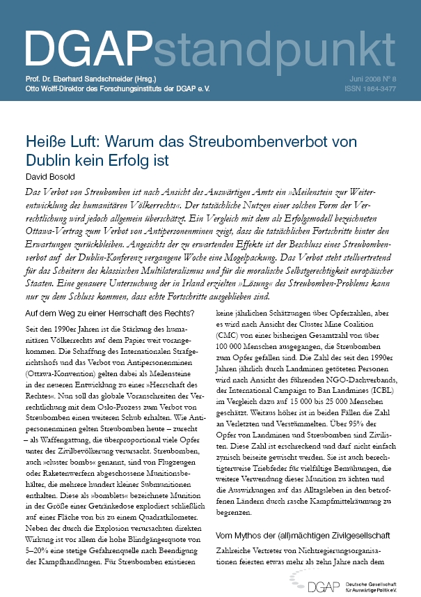 DGAPstandpunkt: Heiße Luft: Warum das Streubombenverbot von Dublin kein Erfolg ist