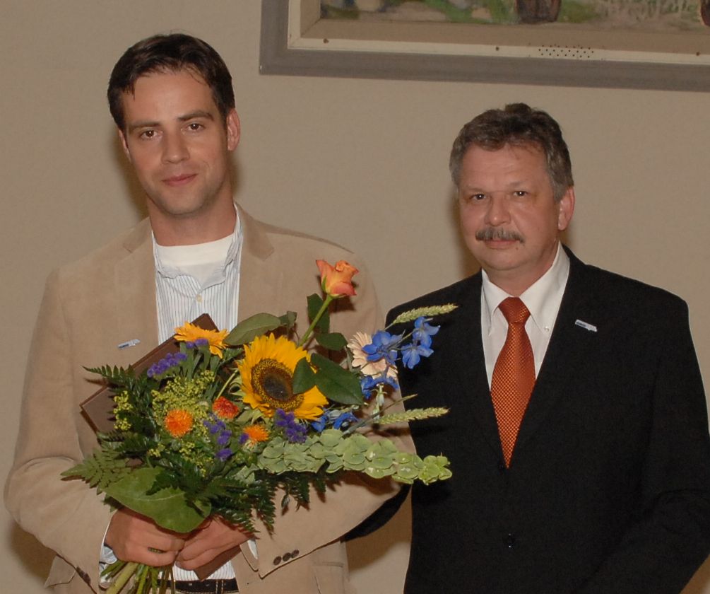 Jena (27.06.08) In diesem Jahr standen die Chancen auf den Habilitationspreis der Friedrich-Schiller-Universität Jena 50 : 50. Denn nur die Rechtswissenschaftliche und die Biologisch-Pharmazeutische Fakultät hatten je einen herausragenden Kandidaten für die Auszeichnung vorgeschlagen. Der Forschungsausschuss entschied sich für den Pharmazeuten PD Dr. Michael Decker, der den Preis am heutigen Schillertag 2008 (27.06.) in Empfang genommen hat. Der Habilitationspreis ist mit 5.000 Euro dotiert, die erneut von der Commerzbank gestiftet worden sind. Michael Decker ist für seine Arbeit "Leitstrukturoptimierung, Hybridmoleküle und Bivalenz-Strategien der Wirkstoffentwicklung am Beispiel potenzieller Antipsychotika und Antidementiva" ausgezeichnet worden.