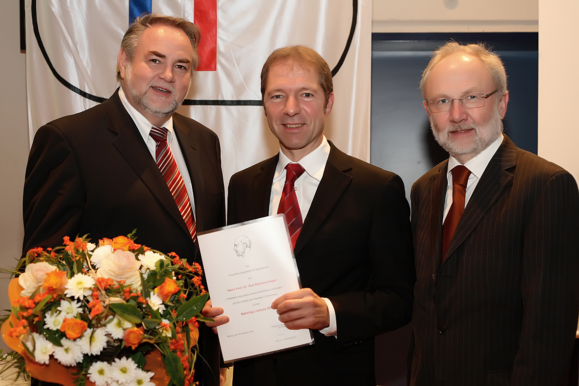 Marburg, 20. November 2008 - Prof. Ralf Bartenschlager, Universität Heidelberg, hält am 19. November die Behring Lecture 2008. Bartenschlager wurde von der Jury ausgewählt aufgrund seiner hervorragenden und innovativen Forschungsarbeiten auf dem Gebiet der Hepatitis C. Im Rahmen des "Dies Academicus" des Fachbereichs Medizin der Philipps Universität Marburg hält der Molekularbiologe einen Übersichtsvortrag über die Hepatitis C Virus-Wirtszellinteraktion und deren Bedeutung für eine antivirale Therapie.