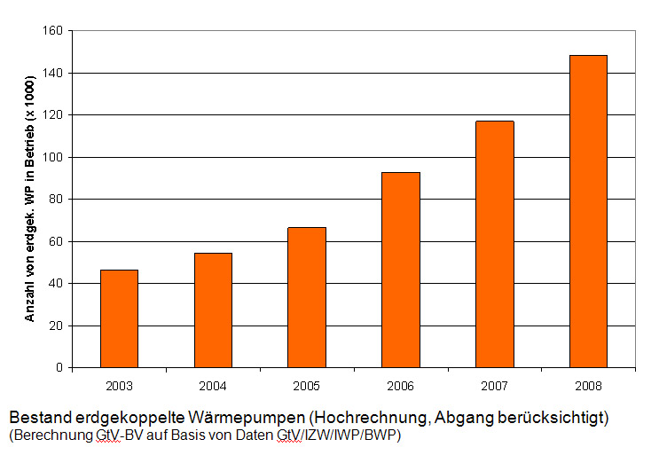 Oberflächennahe Geothermie 2008: Anstieg der Verkaufszahlen um 28.5%