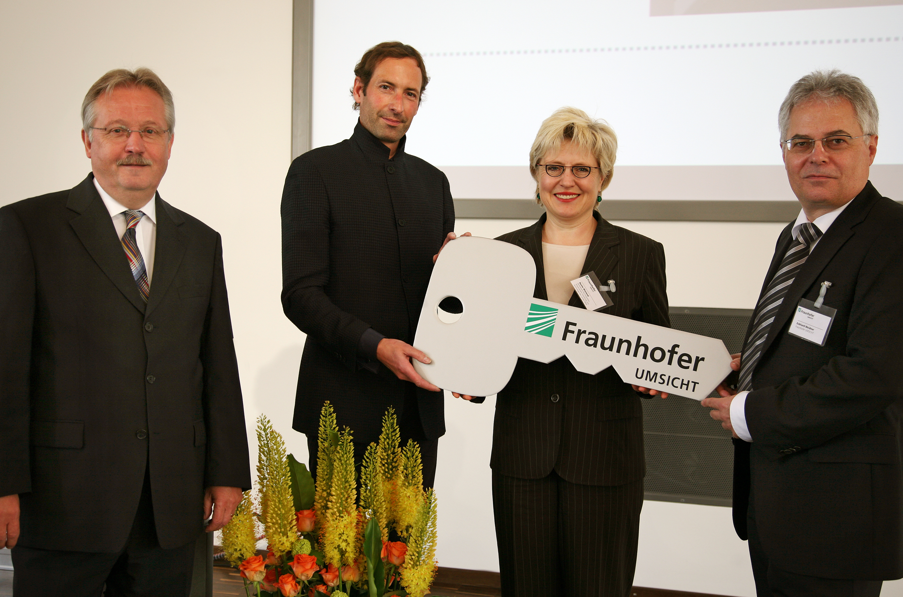 "Wir freuen uns auf eine lange, glückliche und vor allen Dingen erfolgreiche Arbeitszeit in unserem neuen Gebäude und dass wir immer so stolz auf unser neues Gebäude sein können wie heute" erklärte Prof. Eckhard Weidner, Leiter von Fraunhofer UMSICHT, nach der offiziellen Schlüsselübergabe.