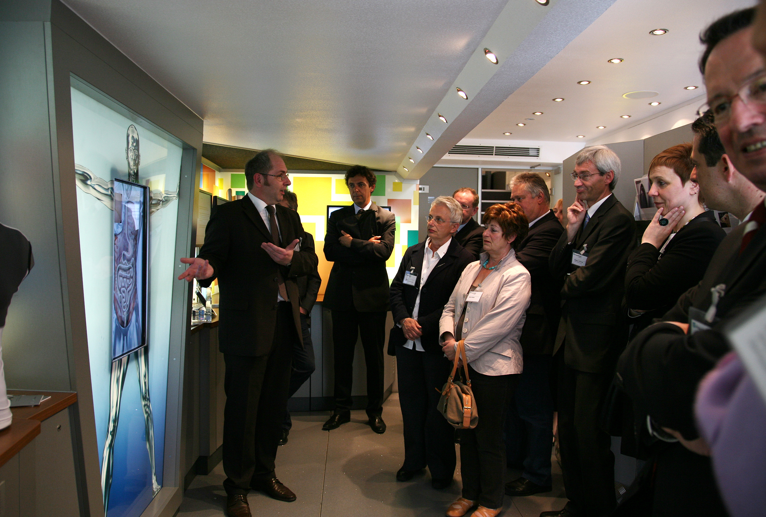 Bunt ging es weiter: Im Fraunhofer-Truck, einem zweistöckigen 42 Tonner LKW mit Außenaufzug, sind selbsterklärende, wissenschaftliche Exponate eingebaut, die verständlich und eindrucksvoll die Forschungsergebnisse der Fraunhofer-Gesellschaft zeigen und die für Technik begeistern. Die Exponate, die den sechs aktuellen Fraunhofer-Zukunftsthemen (Gesundheit - Mobilität - Umwelt - Sicherheit - Kommunikation - Energie) zugeordnet sind, werden durch Film- und Audiobeiträge, Print- und Postermaterialien sowie weitere Medien ergänzt.