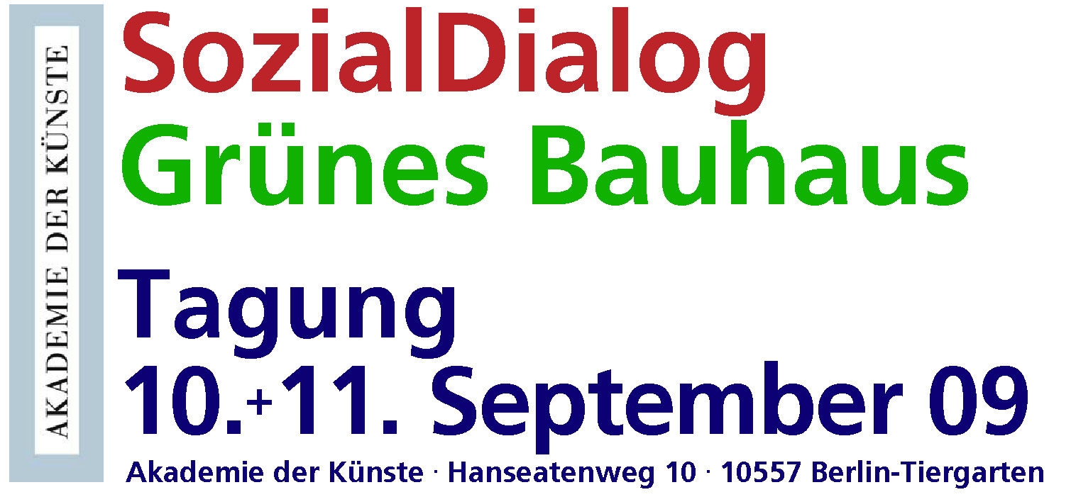 Grünes Bauhaus. SozialDialog Grünes Bauhaus 10.-11.09.2009 Akademie der Künste Berlin