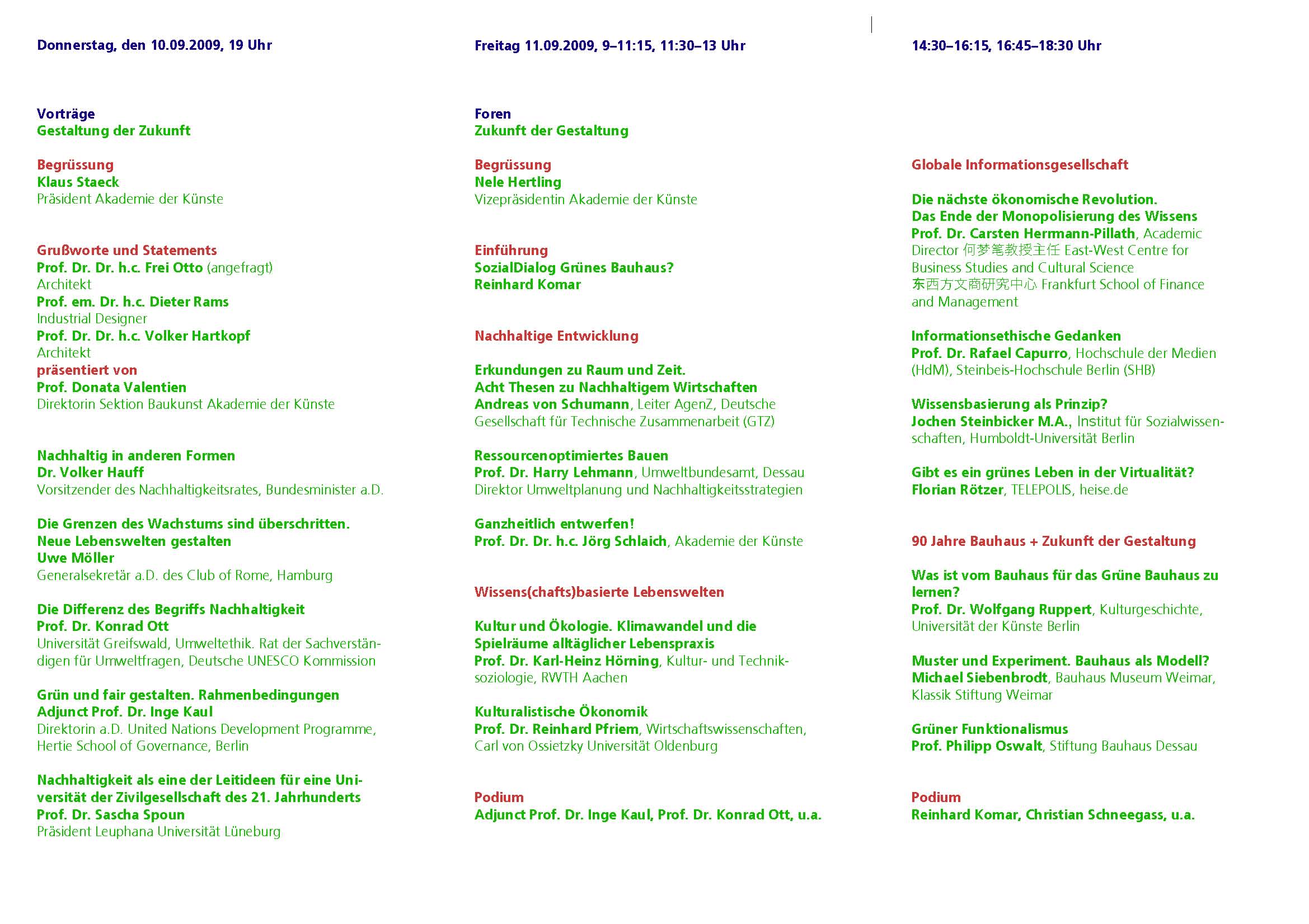 Grünes Bauhaus. SozialDialog Grünes Bauhaus. Akademie der Künste, Berlin 10.-11.9.2009 (Änderung)