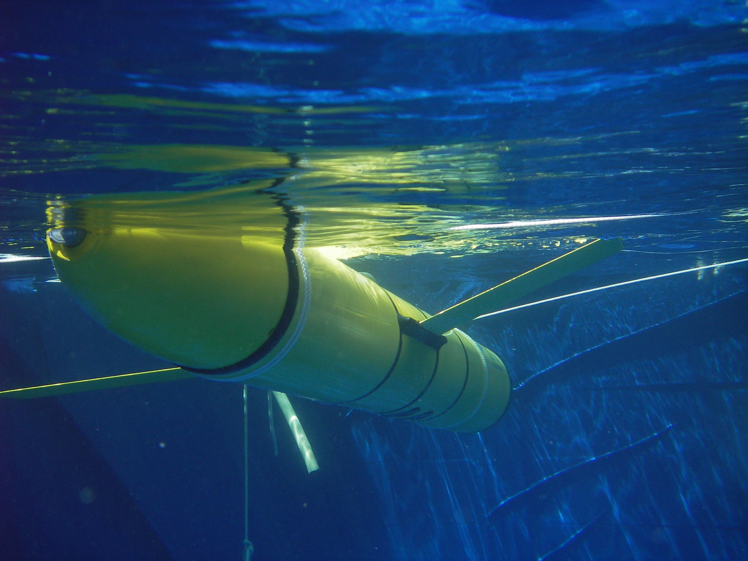 Damit sind die neuen Geräte eine wichtige Ergänzung zu bisherigen Messsonden in den Weltmeeren. "Schon vor 10 Jahren haben wir begonnen, den Ozean mit sogenannten Tiefendriftern systematisch zu erkunden. Mehr als 3000 dieser Instrumente liefern heute kontinuierlich Beobachtungsdaten aus dem Inneren der Ozeane", erklärt Professor Torsten Kanzow, Ozeanograph am IFM-GEOMAR. Dieses überaus erfolgreiche Programm hat nur einen Nachteil: Einmal ausgesetzt, sind die Drifter nicht mehr steuerbar. "Obwohl die neuen Gleiter auch keine direkte Antriebseinheit besitzen, bewegen sie sich dank kleiner Flügel wie Segelflugzeuge unter Wasser vorwärts", erklärt Kanzows Kollege Dr. Gerd Krahmann. "Über Telefon können wir mit dem Gerät 'sprechen' und es so nach jedem Auftauchen in eine bestimmte Richtung lenken", so Krahmann weiter. Über Wochen, ja Monate arbeitet das Gerät dann seine Mission ab. In einem Sägezahnkurs taucht es auf 1000 Meter Tiefe ab und kommt dann wieder zurück an die Oberfläche. Dabei bewegt sich der Gleiter nur langsam, mit etwa 0,3 Meter pro Sekunde, vorwärts. Bestückt ist er mit Instrumenten zur Messung von Temperatur und Salzgehalt sowie mit Sensoren zur Bestimmung des Sauerstoff- und Chlorophyllgehaltes sowie der Trübung des Meerwassers.