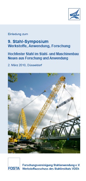 Am 02. März 2010 findet von 10.00 - 16.00 Uhr das 9. Stahl-Symposium im Stahl-Zentrum Düsseldorf statt. Die Veranstaltung widmet sich in Vorträgen aus Forschung und Anwendung dem umfangreichen Themengebiet des Einsatzes von höherfesten Stählen in den Branchen Stahl- und Maschinenbau.