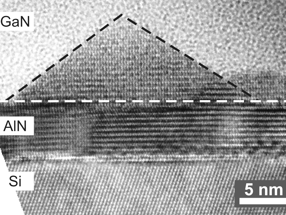 Noch mehr interessieren sich die Forscher aber für Säulen, die ohne Katalysator wachsen. Denn jedes fremde Atom stört letztlich die elektrischen und optischen Eigenschaften von Halbleitern. Ein solches selbstinduziertes Wachstum passiert, wenn in der MBE-Kammer ganz spezielle Bedingungen herrschen. Als Unterlage diente den Forschern in diesem Fall eine Aluminiumnitrid-Schicht (AlN). Dessen Kristallstruktur passt mit GaN nicht exakt zusammen.