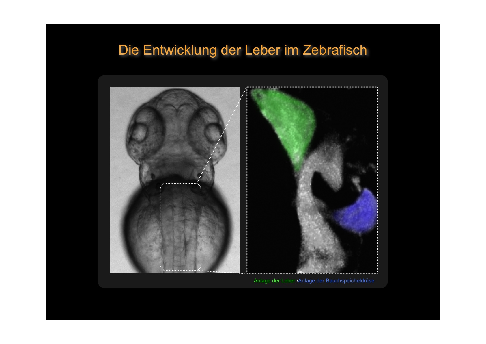 Beim Zebrafischembryo ist das Navigator-Gen in Vorläuferzellen der Leber aktiv. Fehlt es, kann sich die Leber nicht entwickeln. Das Navigator-Gen ermöglicht es den Zellen, wie sein Name besagt, zielgerichtet zu wandern. In einem weiteren Schritt konnten die Forscher zeigen, dass es in den Zellen den Umbau des Zellskeletts optimiert. Es schafft damit die Voraussetzung dafür, dass die Zellen punktgenau zu ihrem Zielort wandern können, wo sie dann die Leber bilden. Angestoßen wird die Produktion des Navigator-Gens von dem Signalmolekül wnt2bb, das zu einer Gen-Familie gehört, die zentrale Funktionen bei der Bildung von Organen hat.