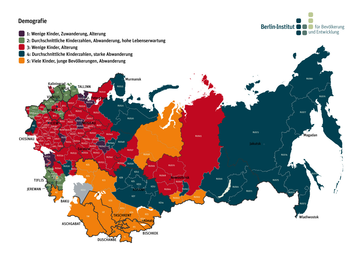 Eine neue Studie des Berlin-Instituts untersucht, welchen demografischen Veränderungen die Regionen Russlands und der anderen ehemaligen Sowjetrepubliken heute und in Zukunft ausgesetzt sind