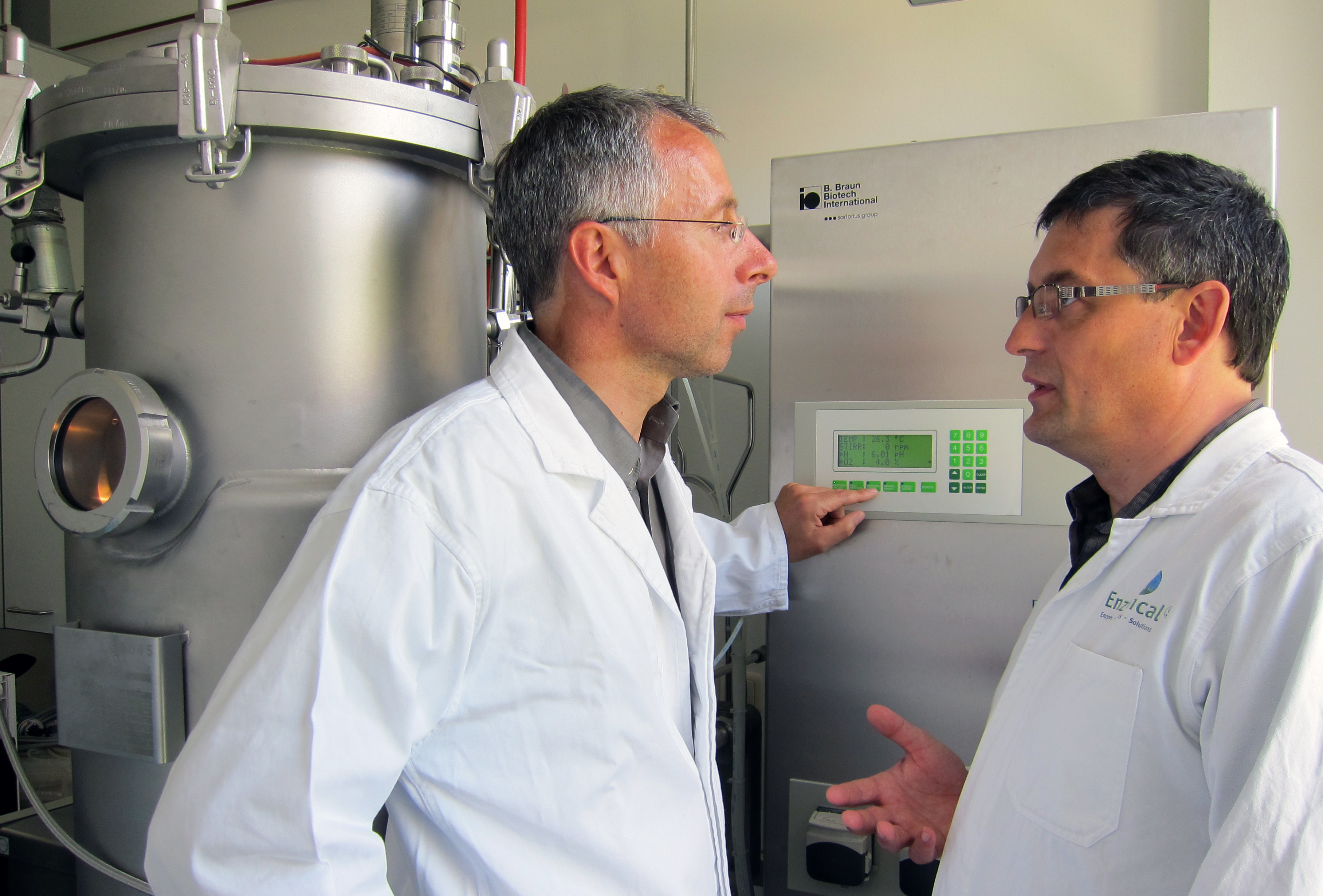 The interdisciplinary team of biochemists, biologists, synthetic and process chemists is led by Dr. Ulf Menyes (chemist) as chief executive officer (CEO) and Dr. Rainer Wardenga (biologist) as head of research and production (CSO). The Enzymicals AG has establishedcollaborations with leading companies in the chemical industry and established the technical requirements for the production of enzymes and for the biotechnological synthesis of specialty and fine chemicals on kg-scalewithin a short period of time. Enzymicals is member of BioCon Valley MV e.V.