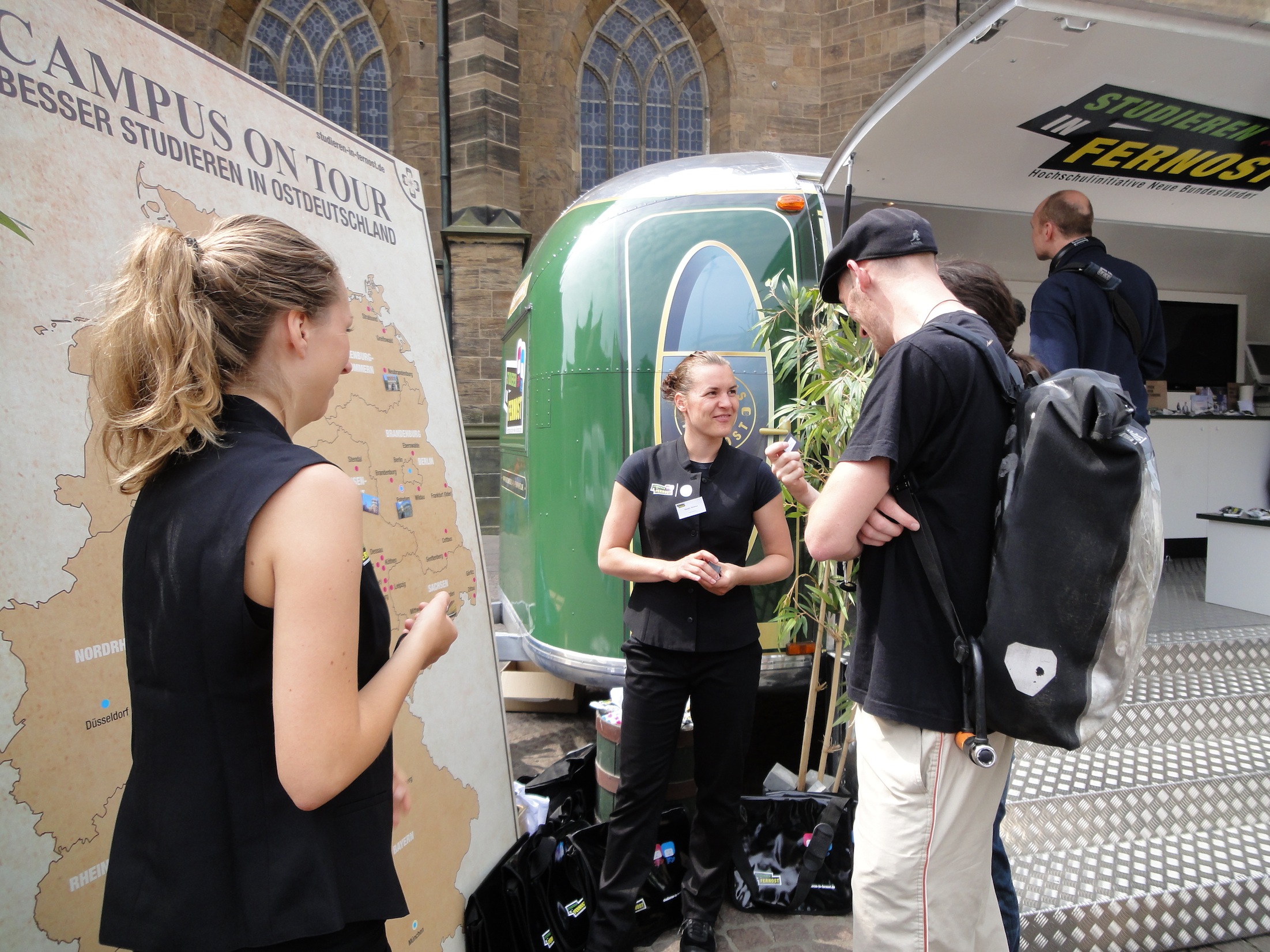 Die Hochschulinitiative Neue Bundesländer durchquert derzeit mit dem „Fernost Express“ den Westen Deutschlands. Um den Bremern die Vorzüge der ostdeutschen Hochschullandschaft näher zu bringen, machte der „Fernost Express“ am 15. Juni 2011 auf dem Domshof Station. Mit dabei waren vier Studenten ostdeutscher Hochschulen, die Studieninteressierten und ihren Eltern für Fragen rund um Studium und Leben in ihrer Hochschulstadt zur Verfügung standen.