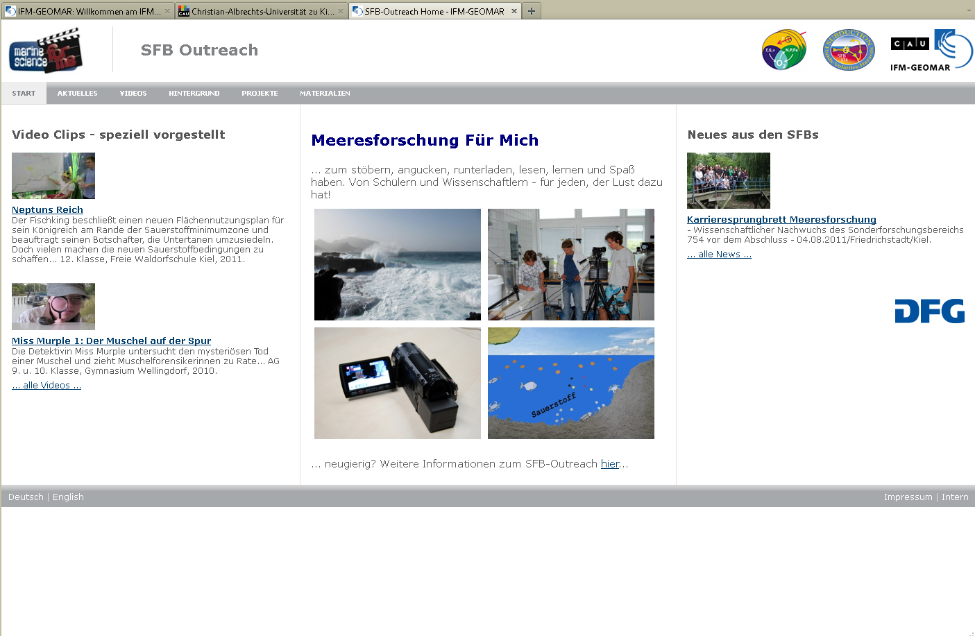https://sfb-outreach.ifm-geomar.de Das Portal „Meeresforschung für Mich“