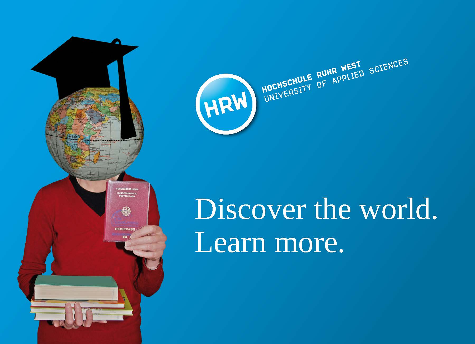 Die Gewinner des diesjährigen Postkartenwettbewerbs stehen fest. Michaela Salomon, die an der Hochschule Ruhr West im vierten Semester BWL-Emerging Markets studiert, erhielt den ersten Platz. Als Werbepostkarte für das International Office der Hochschule gestaltete sie ein Bild mit einer Studentin, die als Kopf einen Globus trägt. Der Slogan der Postkarte lautet: „Discover the world. Learn more.“ Das Preisgeld in Höhe von 1.400 Euro, das vom Mülheimer Lions Club gestiftet wurde, wird sie für einen Sprachkurs oder als Zuschuss für ihr kommendes Auslandssemester in Irland nutzen. Die Jury überzeugte der Postkartenentwurf durch Witz und Kreativität. Sie belohnte die Arbeit der jungen BWL Studentin mit dem ersten Preis.