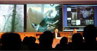 Erst in der jüngsten Medizingeschichte etabliert, gehört das Herzzentrum Leipzig zu den deutschlandweit wenigen Krankenhäusern, die ein sogenanntes MitraClip-System bei Patienten, die an den Folgen einer Mitralklappeninsuffizienz leiden, einsetzen. Die bei diesem Krankheitsbild notwendige Mitralklappenrekonstruktion kann patientenschonend mittels eines Zugangs über die Leistenvene erfolgen. Bisher wurde dieser Eingriff nur in kleinen Rahmen live gezeigt. Die Frühjahrstagung 2012 bietet die Live-Verfolgung dieser Operation, bei der die Mitralklappe über einen Clip gerafft wird, nunmehr allen Medizinern – insbesondere auch den niedergelassenen - an.