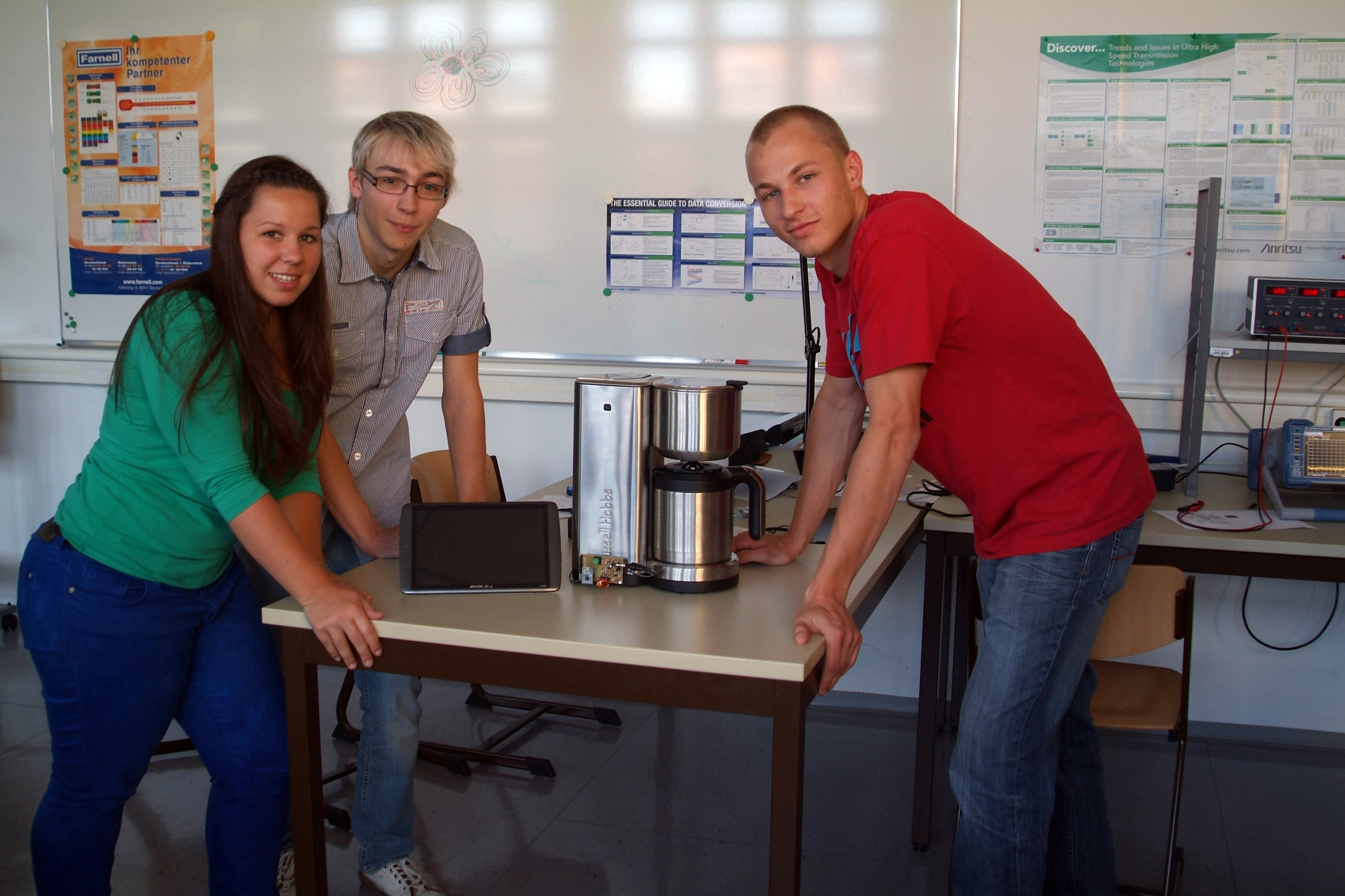 Eine Kaffeemaschine mit einer App steuern? Das klingt nach einer neuen technischen Errungenschaft. Cathleen Ramsthaler, Sebastian Wenke und Stefan Jäger, alle drei Elektrotechnikstudierende an der FH Schmalkalden, entwickeln gerade eine sogenannte Kaffeemaschinen-App. Ihre Idee ist es, eine Kaffeemaschine über Bluetooth zu steuern und die Werte an eine eigens dafür programmierte App zu übertragen.