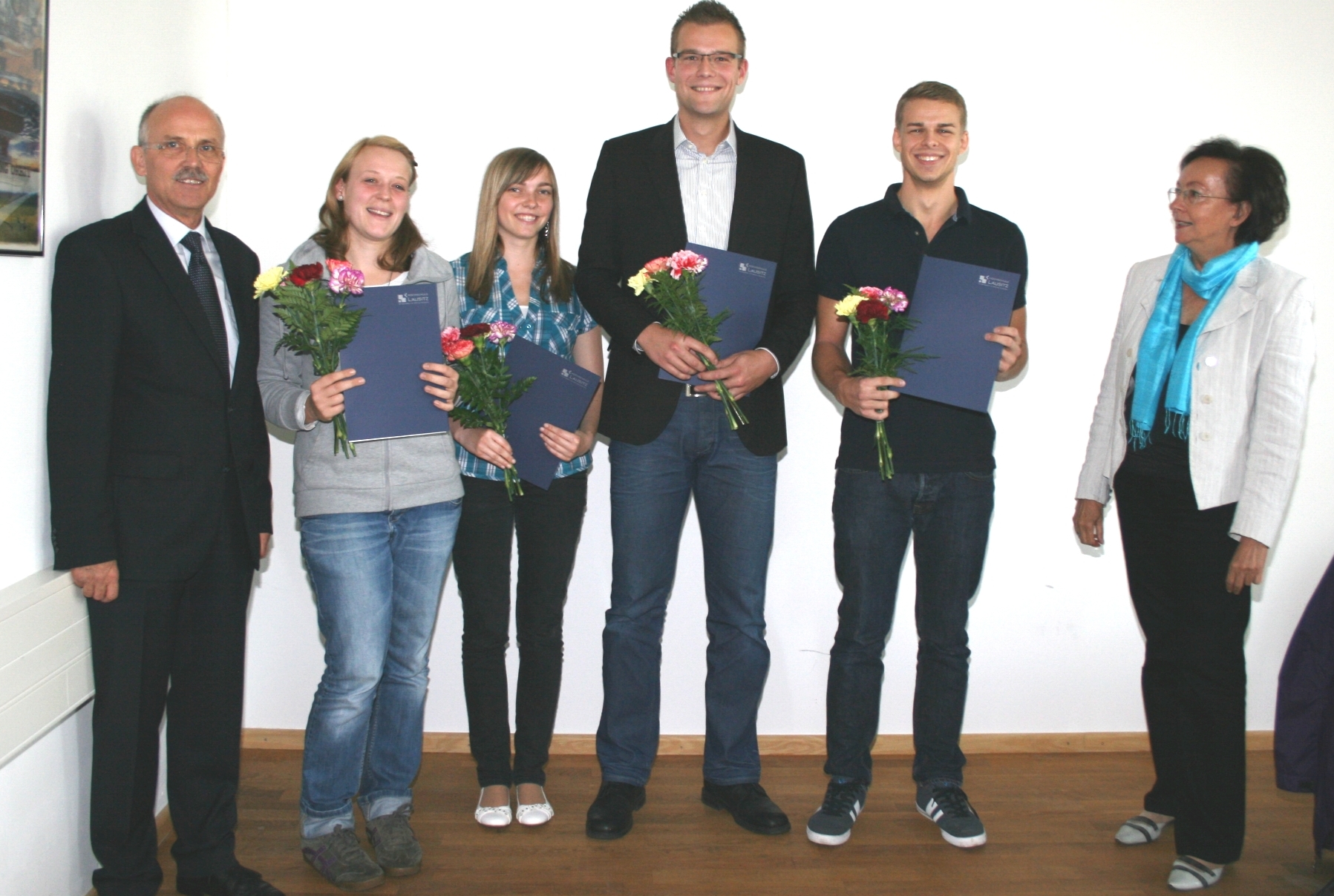 Die Stipendiaten sind: Hagen Wittlich, der seit dem Wintersemester 2010 Betriebswirtschaftslehre an der Hochschule Lausitz studiert, Isabella Keitz aus dem Bachelor-Studiengang Medizintechnik, Ulrike Rippa aus dem Master-Studiengang Soziale Arbeit, Steve Sangl aus dem Master-Studiengang Wirtschaftsingenieurwesen sowie Brian Hornig aus dem Bachelor-Studiengang Wirtschaftsingenieurwesen.
