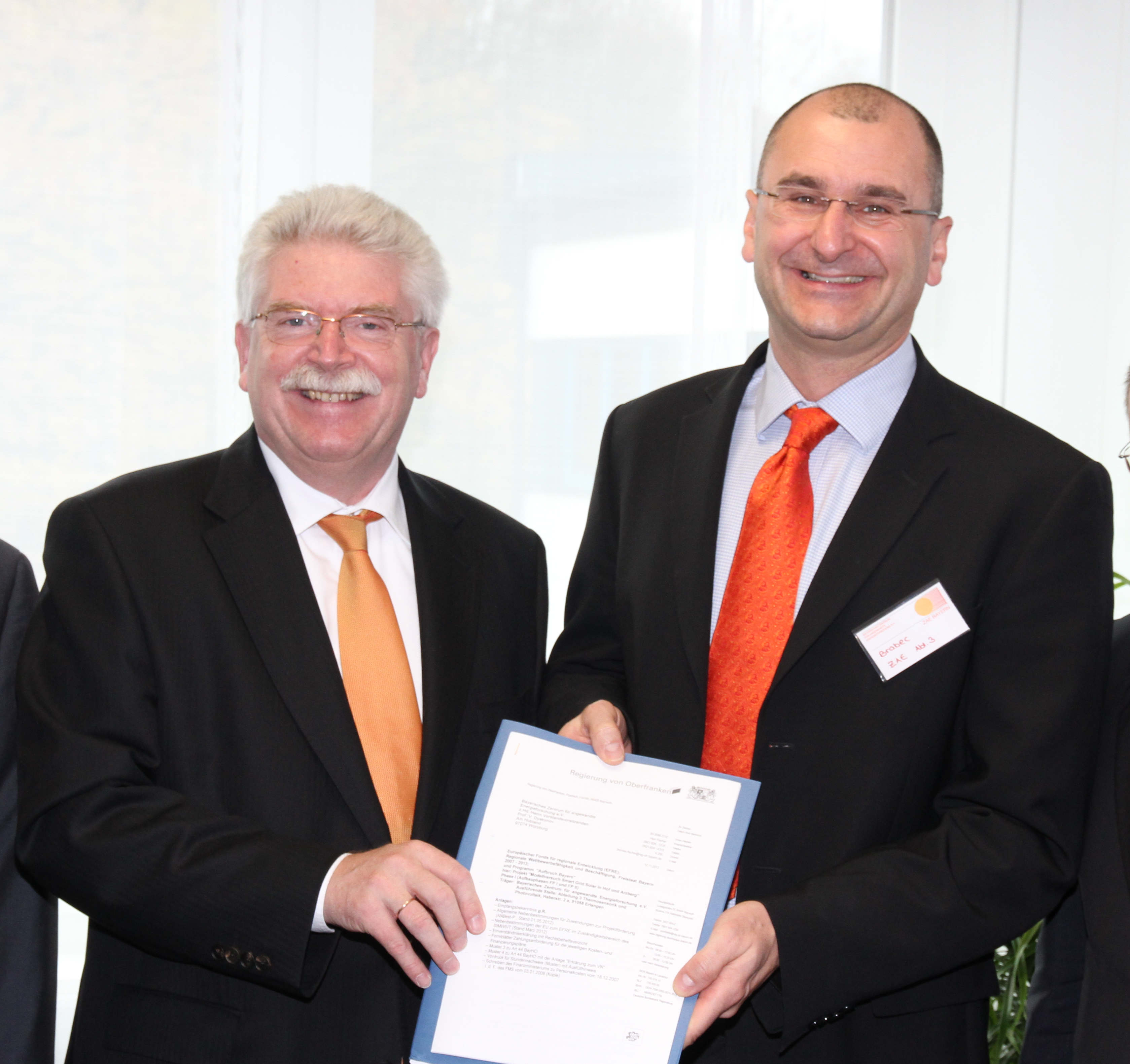 8,7 Mio. Euro – diese Summe investieren der Freistaat Bayern, verschiedene Industriepartner und die Europäische Union in ein Zukunftsprojekt in der Region Hochfranken. Der Bayerische Staatsminister Martin Zeil kam am 12. November persönlich nach Hof um den Projektverantwortlichen des Bayerischen Zentrums für Angewandte Energieforschung e. V. den Bewilligungsbescheid für den ersten Abschnitt des Projektes „Smart Grid Solar“ in Höhe von 7 Mio. Euro zu überreichen.