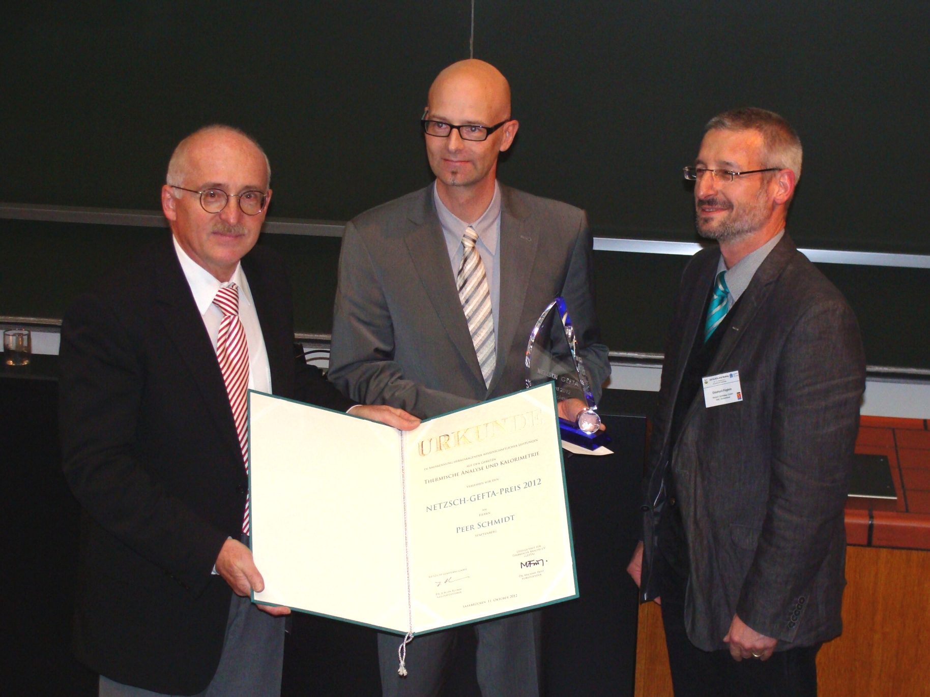 Saarbrücken/ Senftenberg. Peer Schmidt, Chemieprofessor an der Hochschule Lausitz in Senftenberg, erhielt kürzlich anlässlich der Jahrestagung der Deutschen Gesellschaft für Thermische Analyse (GEFTA) in Saarbrücken den Netzsch-GEFTA-Preis. Der seit 1978 in der Regel alle zwei Jahre an nationale wie auch international renommierte Wissenschaftler vergebene Preis würdigt herausragende wissenschaftliche Leistungen bei der Entwicklung und Anwendung von Methoden zur Untersuchung thermischer, also temperaturabhängiger Materialeigenschaften.