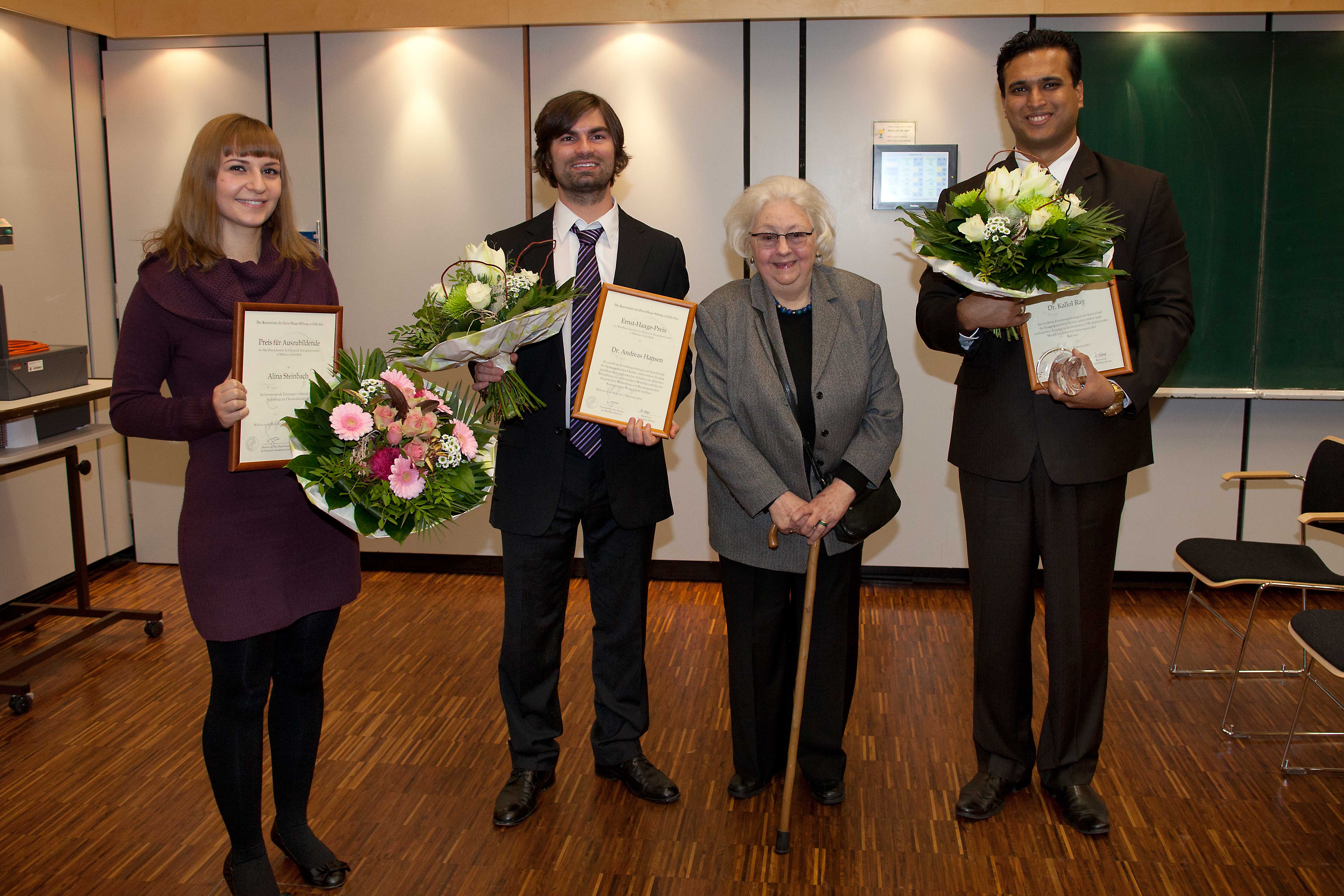 Der Ernst Haage-Preis für herausragende Forschungsleistungen im Bereich Bioanorganische Chemie ging an Dr. Kallol Ray. Ray ist Juniorprofessor an der Humboldt Universität zu Berlin und entwickelt dort mit seiner Gruppe neuartige Katalysatoren, die z.B. für die Pharmaindustrie von Interesse sind.