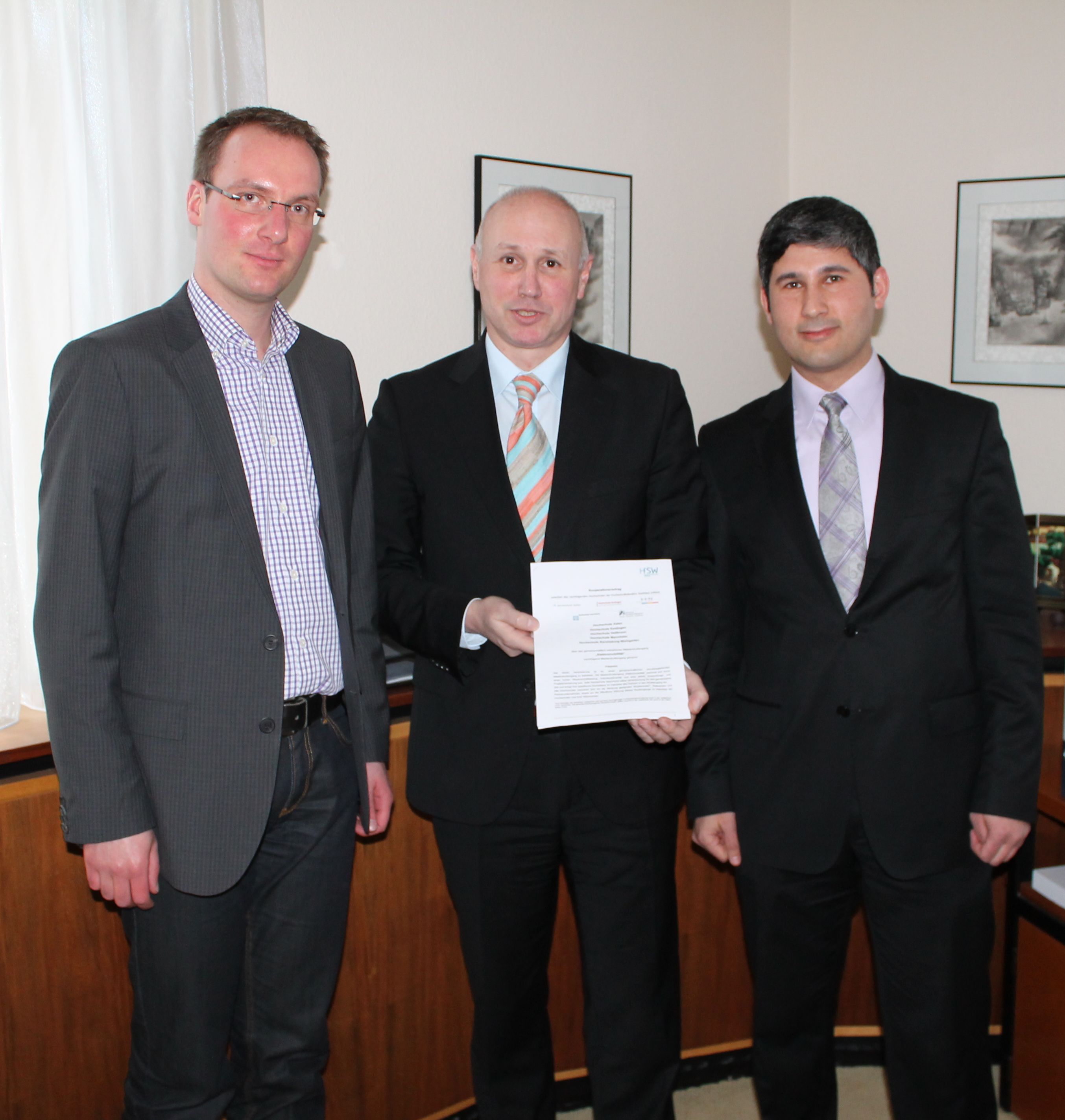 Deutschlandweit einzigartig: Die staatlichen Hochschulen der Hochschulföderation SüdWest (HfSW) bieten ab Herbst 2013 ein gemeinsames, berufsbegleitendes Masterstudium „Elektromobilität“ mit Abschluss M.Eng. an. Gestern Abend wurde dazu die Kooperationsvereinbarung an der Hochschule Esslingen unterzeichnet. Der viersemestrige Masterstudiengang bietet dabei eine umfassende Weiterqualifizierung für Ingenieure und Ingenieurinnen, die sich zukünftigen Herausforderungen im Bereich der nachhaltigen Entwicklung in der Automobilindustrie und damit einem zentralen Zukunftsthema stellen wollen.