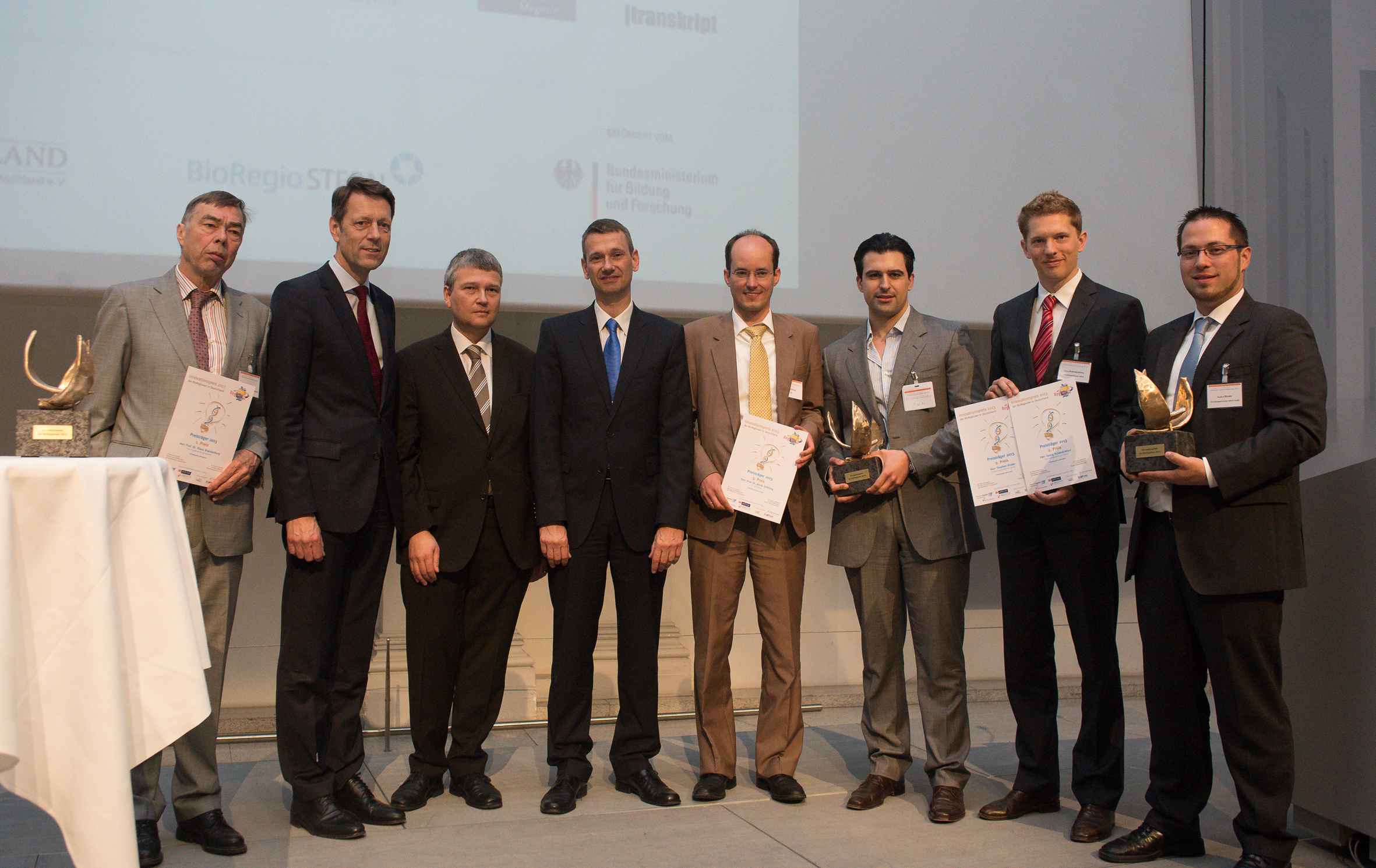 The BioRegions of Germany are the regional initiatives for the promotion of the business application of modern biotechnology in Germany. They awarded the three most innovative and patented research ideas from the life sciences which have excellence in market opportunities. Organiser of this year’s competition was BioPark Regensburg GmbH. The jury of ten chose three outstanding projects from the research fields for the development of novel medicines and more efficient biocatalysts. These prize winners were awarded in person by Dr. Georg Schütte, Secretary of State for the Ministry of Education and Research within the framework of the German Biotechnology Conference 2013 in Stuttgart.