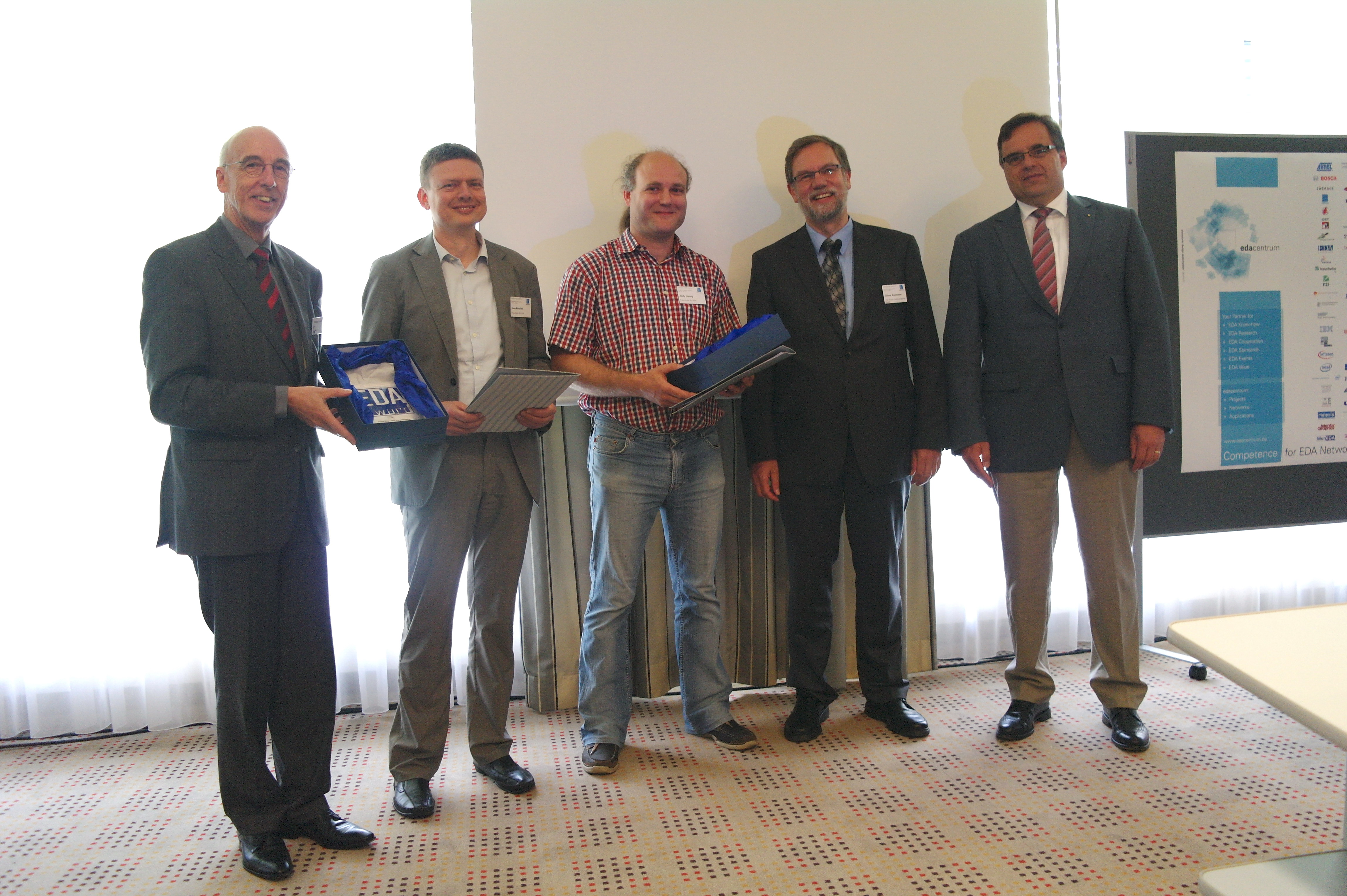 Auf dem edaWorkshop13 am 16. Mai 2013 hat das edacentrum e.V. Herrn Andy Heinig und Herrn Uwe Knöchel von der Fraunhofer Gesellschaft IIS/EAS in Dresden mit dem jährlich zu vergebenden EDA Achievement Award ausgezeichnet.