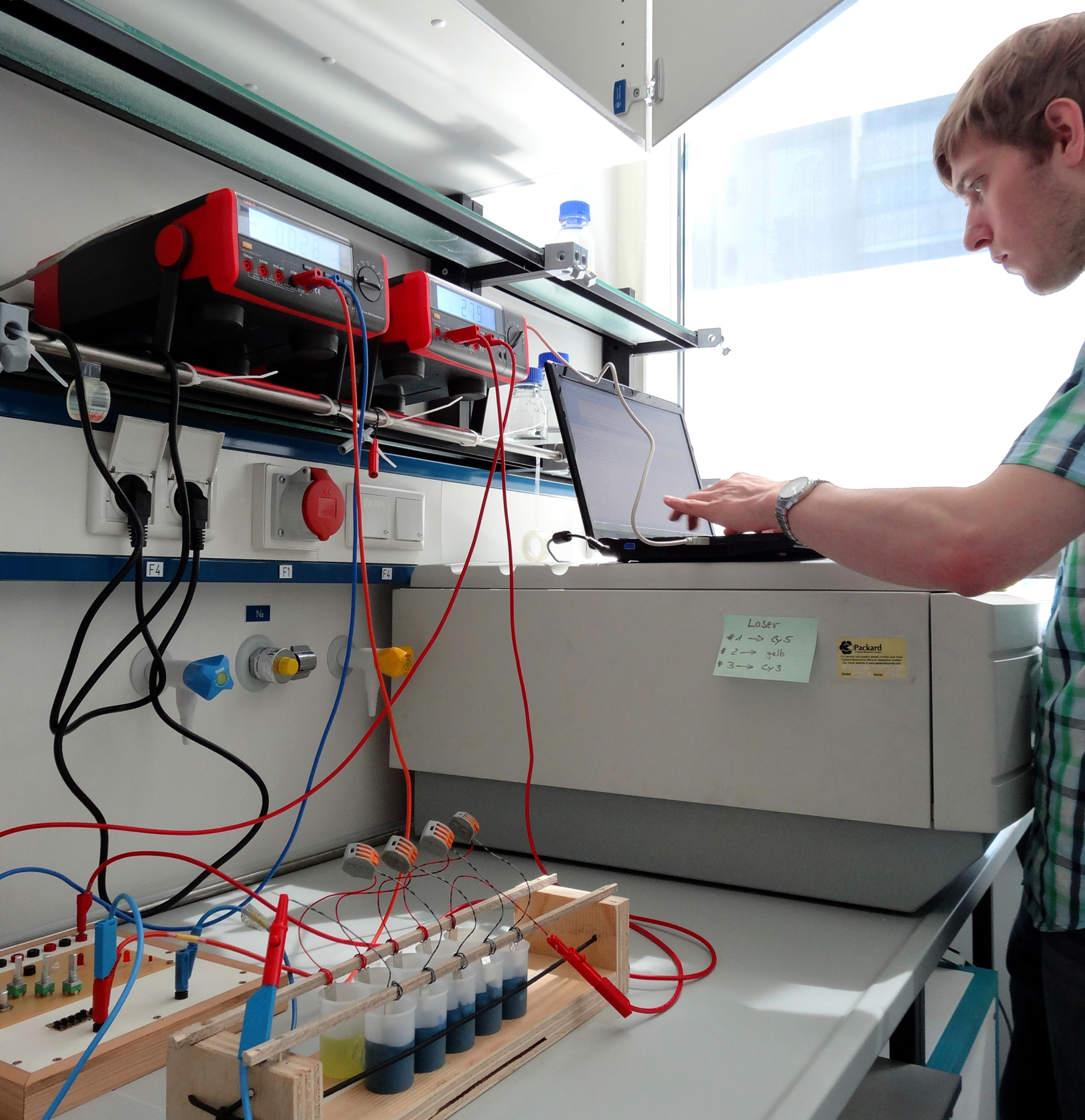 Im Labor untersuchen die Bielefelder Studierenden unterschiedliche bakterielle Organismen und deren genetische Komponenten. Durch die Kombination verschiedener Gene ist es möglich, den Organismus Escherichia coli im Hinblick auf eine effiziente Stromerzeugung zu optimieren. Erste Erfolge können die Studierenden bereits vermelden: Sie haben verschiedene Gene zur Elektronenübertragung isoliert und mit der Konstruktion einer geeigneten Apparatur zur Stromproduktion begonnen. Bis zum europäischen Vorentscheid von iGEM im Oktober wollen sie eine optimierte Biobatterie zum Betrieb von Kleinanwendungen entwickeln.