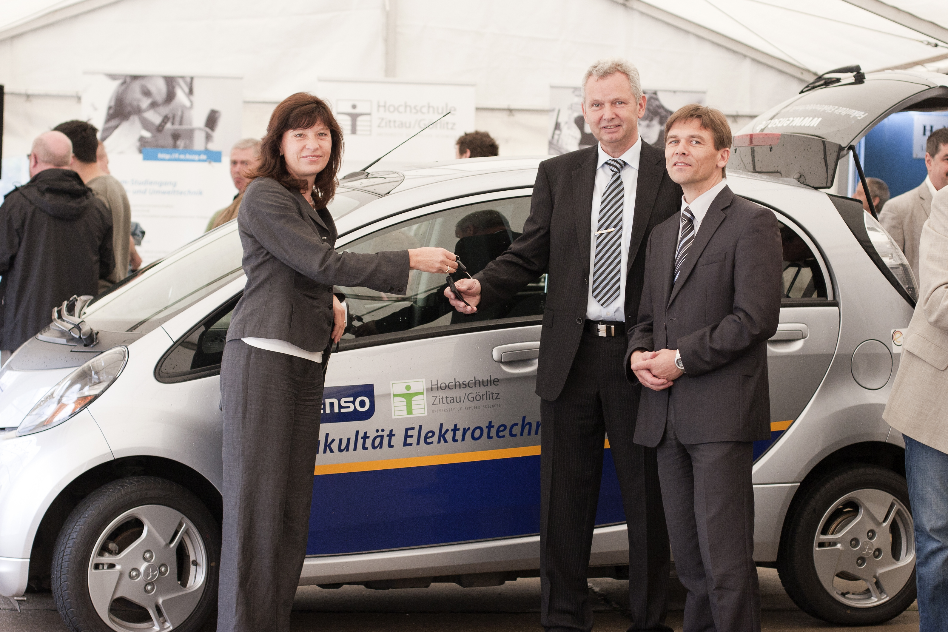 Die ENSO übergab der Fakultät Elektrotechnik und Informatik der Hochschule Zittau/Görlitz kürzlich feierlich ein voll elektrisch betriebenes Fahrzeug (Mitsubishi i-MiEV), um es zwischen den beiden Standorten der Fakultät in Zittau und in Görlitz zu nutzen und dabei viele relevante Fragen zur Elektromobilität zu untersuchen.