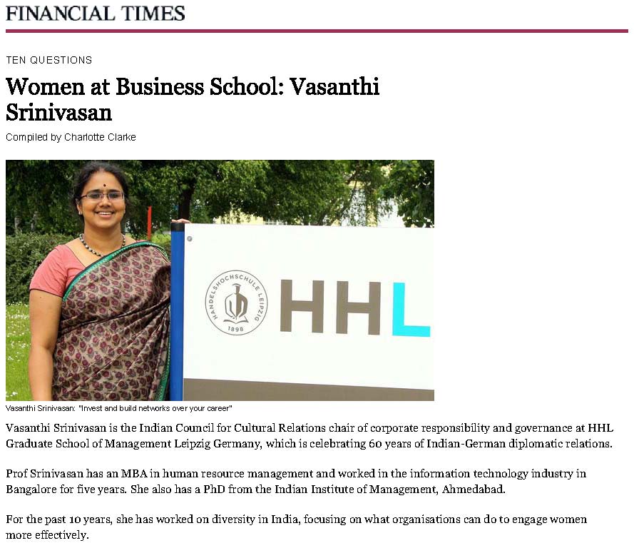 Women at Business School. HHL Professor Vasanthi Srinivasan portrait by Financial Times 'Women at Business School' interview online at the Financial Times: <http://www.ft.com/intl/business-education/women-at-business-school>