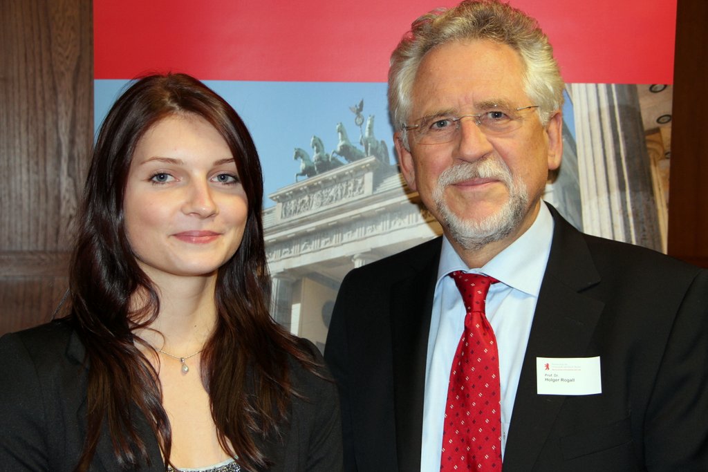 Auch Bianca Herold, die den Bachelor-Studiengang „Wirtschaftsrecht“ an der HWR Berlin absolviert, kann ihren Teilzeitjob zugunsten des Studiums durch das Stipendium etwas reduzieren. Sie ist seit fast zwei Jahren zudem ehrenamtliche Lesepatin an einer Grundschule im Bezirk Tempelhof-Schöneberg. „Ich liebe Berlin und finde es wichtig, sich hier zu engagieren. Es ist toll, dass Unternehmen wie die IBB das auch tun und außerdem Studierende fördern.“ „Firmen finanzieren diese Stipendien mit, weil sie als Wirtschaftspartner/innen der Hochschule überzeugt sind von der Qualität der Studiengänge an der HWR Berlin und dem Know-how und Potential ihrer Absolvent/innen“, unterstreicht Prof. Dr. Holger Rogall, Direktor des Instituts für Nachhaltigkeit der HWR Berlin, und freut sich besonders, dass eines der zehn neuen Deutschlandstipendien an eine Studentin des Bachelor-Studiengangs „Wirtschaftsingenieur/in – Umwelt und Nachhaltigkeit“ vergeben wurde. Antje Trauboth begeistert die Mischung aus Wirtschaftsthemen und Ingenieurwissenschaft in ihrem Studium. Ehrenamtlich half sie zum Beispiel vor Ort im Entwicklungshilfeprojekt der Stiftung Millennium Elephant Foundation in Sri Lanka.