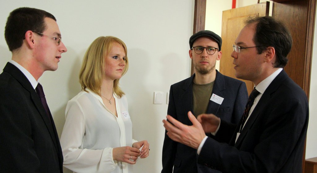 Das Deutschlandstipendium prämiert zwar primär Leistung, berücksichtig darüber hinaus auch persönliche Lebensumstände und Werdegänge der Bewerber/innen, denen eine finanzielle Unterstützung den erfolgreichen Abschluss ihres Studiums maßgeblich erleichtert. Zu ihnen gehört Mathias Todisco, der als Berufserfahrener ohne Abitur bald sein Bachelor-Studium „Wirtschaftsinformatik“ abschließen wird. Der 29-jährige Vater von zwei Kindern hatte nach Beendigung einer Ausbildung bereits fünf Jahre in diesem Bereich gearbeitet, entschied sich dann jedoch, durch ein Studium seine wissenschaftliche Qualifikation und damit berufliche Aufstiegschancen zu erhöhen. Als studentischer Gutachter nimmt er Programmakkreditierungen an anderen Hochschulen vor und war im Career Service der HWR Berlin tätig. „Nugg.ad, das Unternehmen, das mich fördert, hatte ich bisher gar nicht in die engere Wahl genommen. Aber nach dem ersten Austausch mit der Personalmanagerin heute, könnte ich mir gut vorstellen, meine Abschlussarbeit zu einem für diese Targeting-Plattform relevanten Thema zu schreiben und nach dem Studium dort zu arbeiten.“