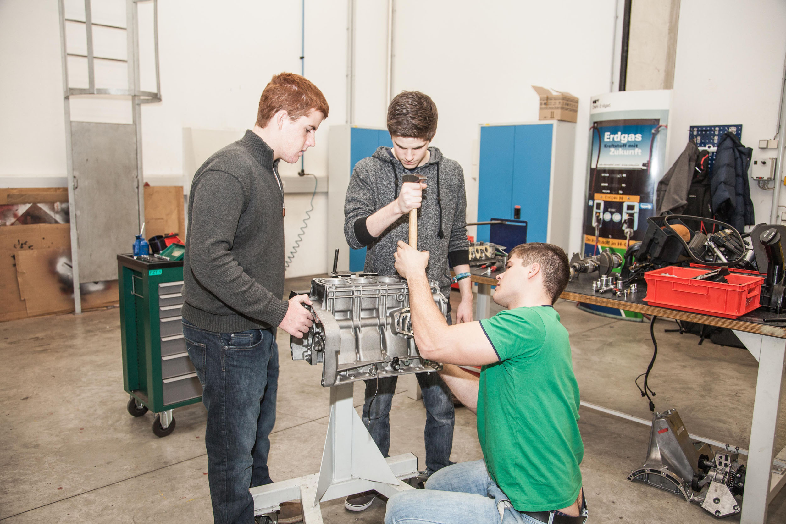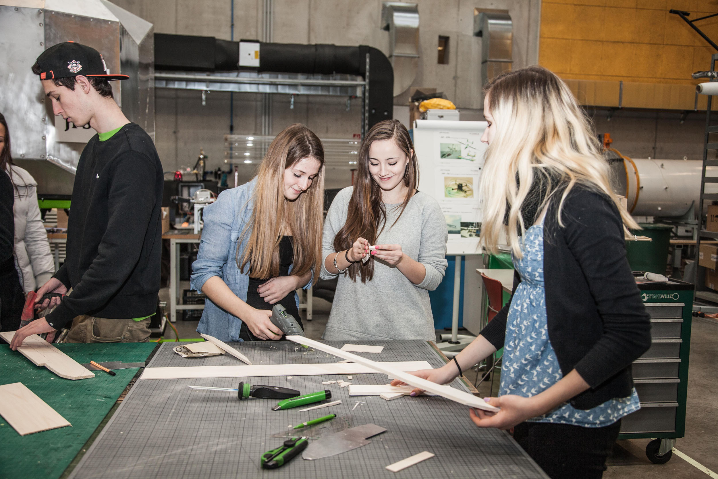 Bereits zum 9. Mal bot die FH JOANNEUM in der letzten Woche vor den steirischen Semesterferien Workshops unter dem Motto „Technik zum Angreifen“ an. 250 SchülerInnen von zehn Schulen, elf Studiengänge, 17 Lehrende und 46 Studierende bauten, programmierten, bastelten, schraubten, filmten – und hatten vor allem Spaß an der Technik. „Fly.high“ hieß es am Studiengang „Luftfahrt/Aviation“, wo die SchülerInnen ihre Flugkünste im Flugsimulator testeten oder eigene Gleiter mit Wasserstrahlantrieb bauten. Buchstäblich „ins Herz des Autos“ führte der Studiengang „Fahrzeugtechnik/Automotive Engineering“, wo die SchülerInnen unter anderem einen Motor zerlegen und wieder zusammen bauen mussten.