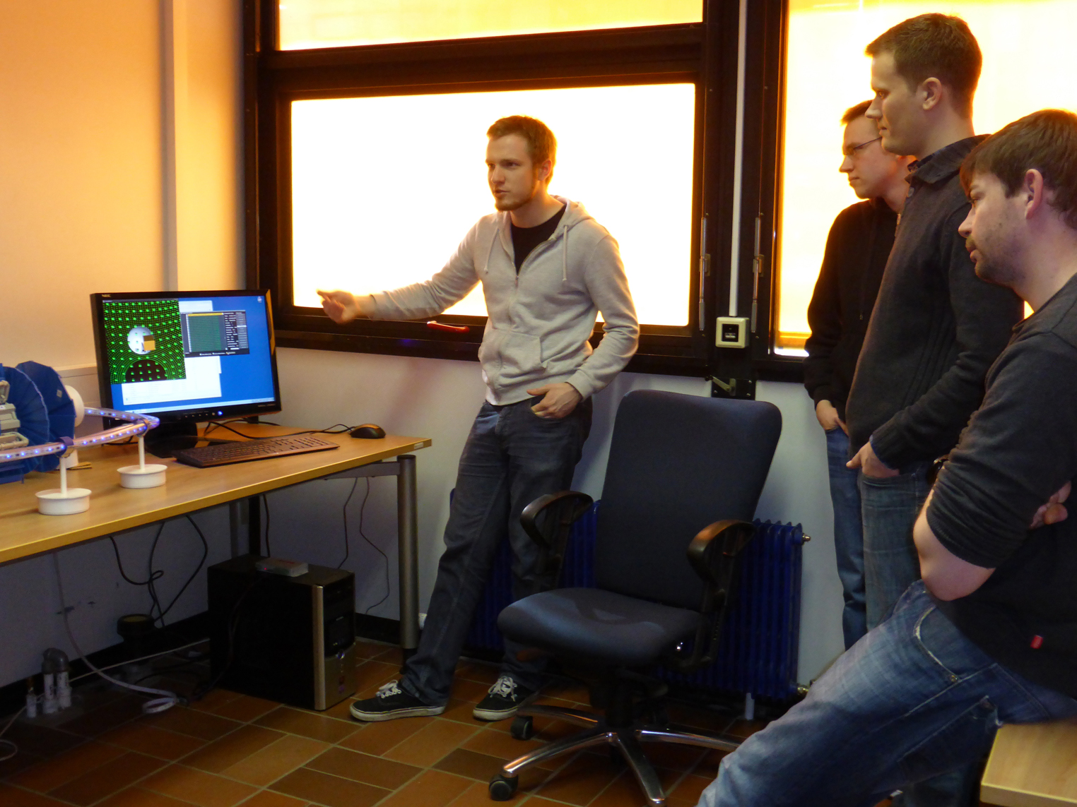 Studierende der Philipps-Universität präsentieren auf der Computermesse CeBIT in Hannover, wie sich die IT-Infrastruktur am Teilchenbeschleuniger des CERN überwachen lässt. Das Team demonstriert seine Entwicklung auf Einladung der Firma „Software AG“, wenn Bundeskanzlerin Angela Merkel dem Stand des Technologieunternehmens am kommenden Montag (10. März 2014) einen Besuch abstattet. Die Studierenden hatten mit ihrem Projekt einen Ideenwettbewerb der Software AG gewonnen.